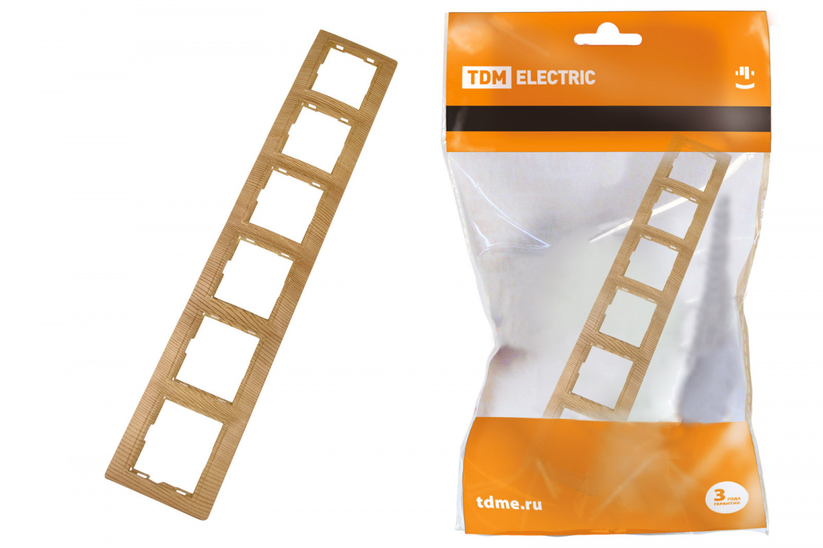 - Рамка 6 постовая горизонтальная "ЭКО" (сосна) "Таймыр" (1/10/100) TDM (SQ1814-0234)