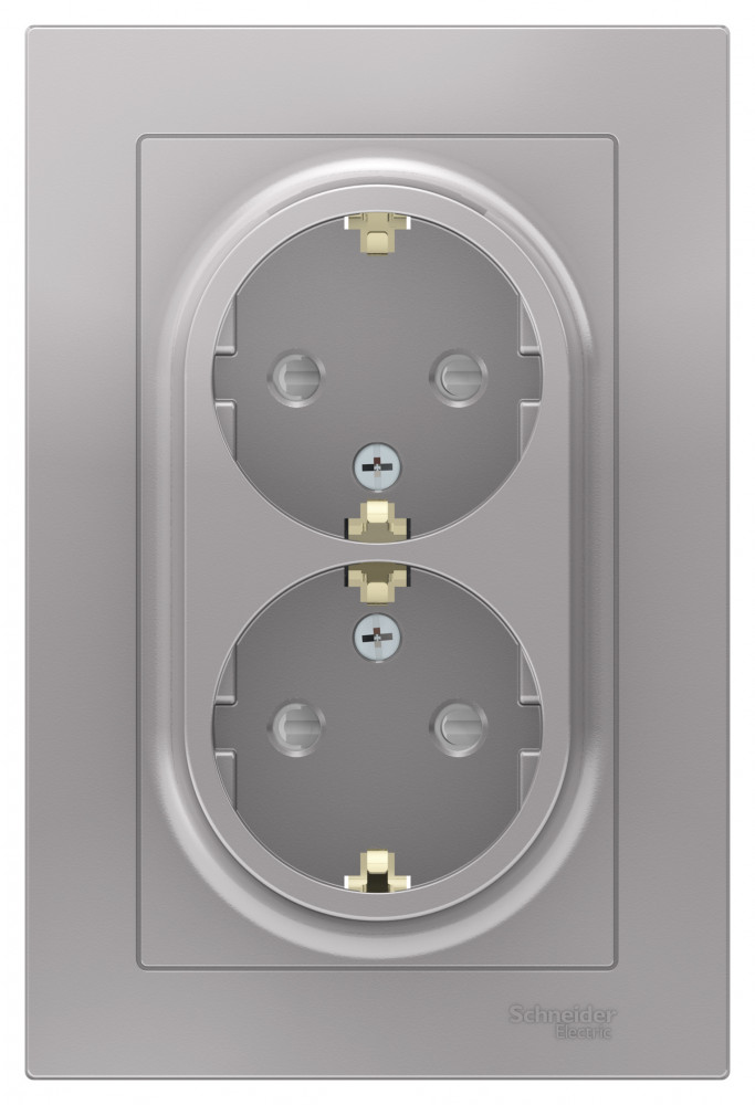 - Розетка 2-м С/У ATLASDESIGN 16А IP20 с заземл. защ. шторки в сборе алюм. Systeme Electric ATN000326 (1/6/36)