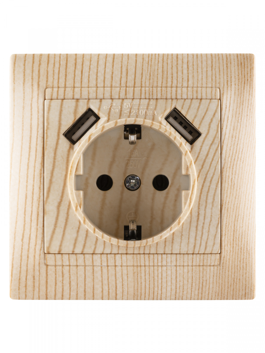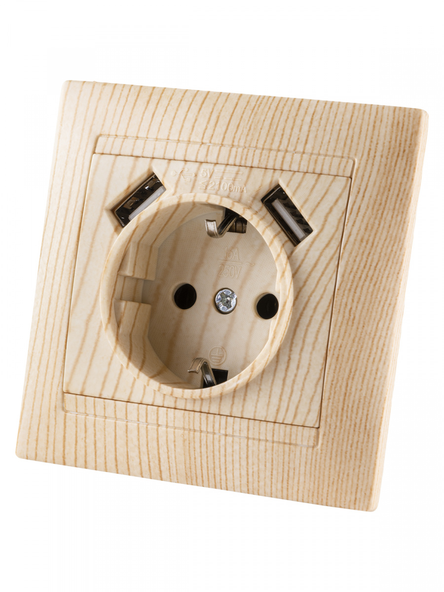 - Розетка 2П+З 16А 250В + 2 USB порта 2,1А 5В сосна с/у, "Лама" (1/96) TDM (SQ1815-0342)