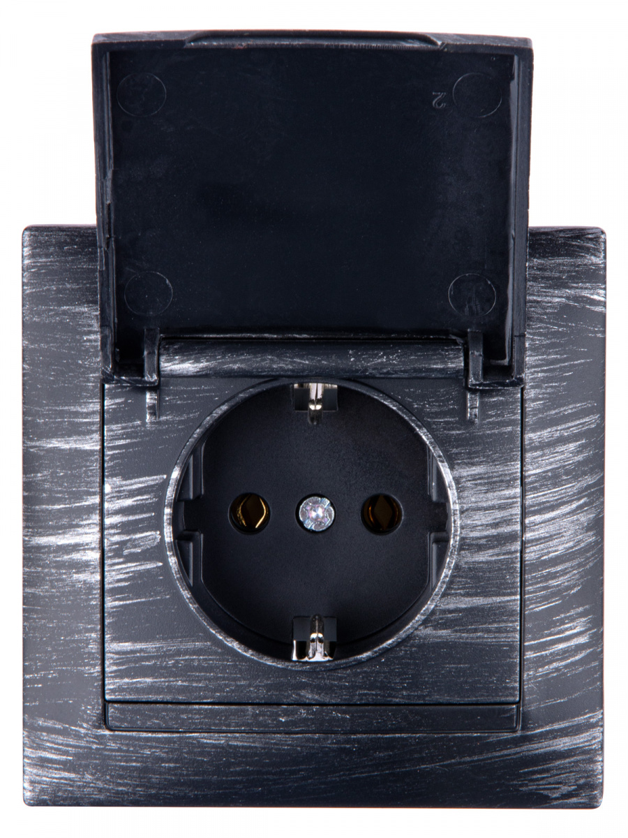 - Розетка 2П+З 16А 250В IP44 с крышкой старинное серебро с/у, "Лама" (1/10) TDM (SQ1815-0667)