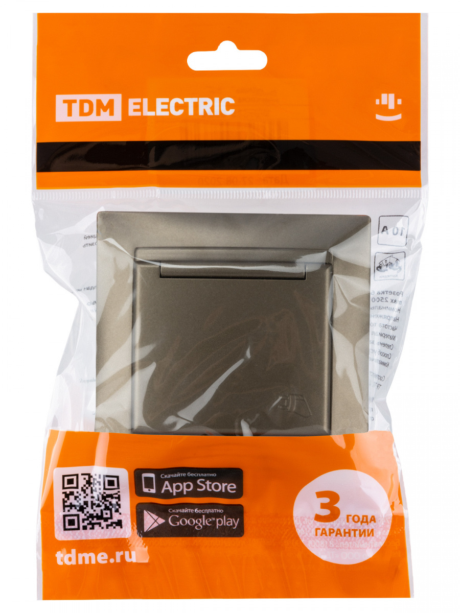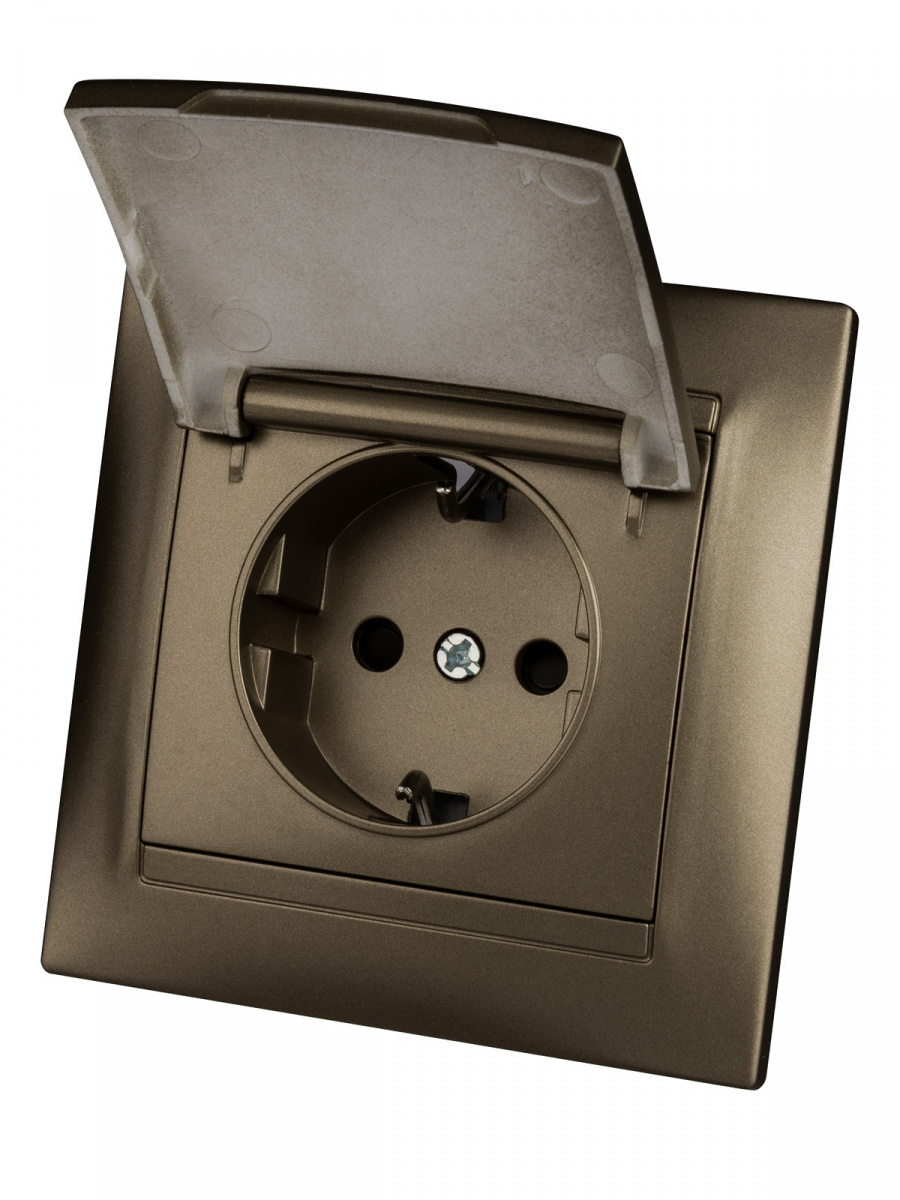 - Розетка 2П+З 16А 250В IP44 с защ. шт. с крышкой бронза "Лама" (10/120) TDM (SQ1815-0714)