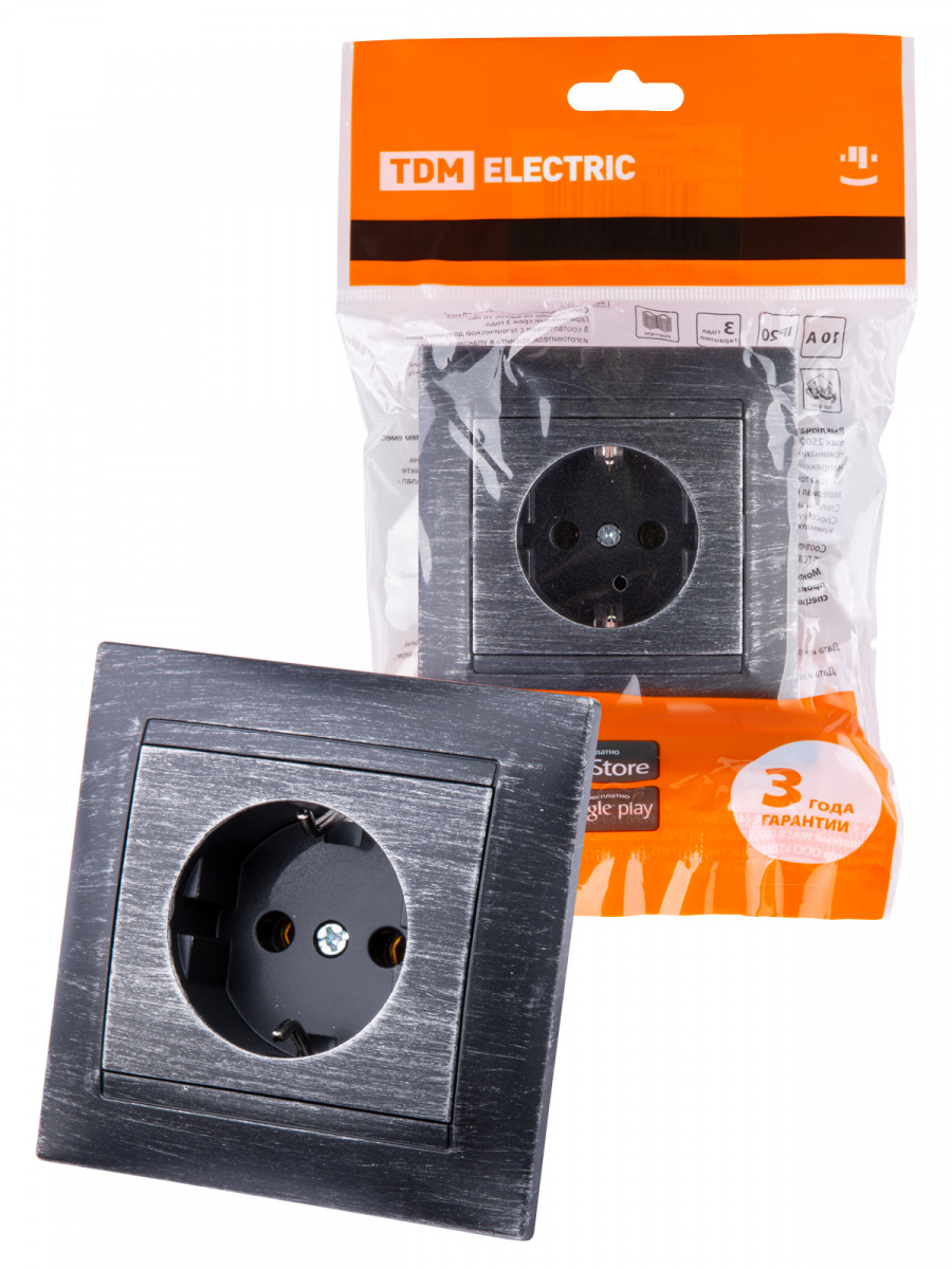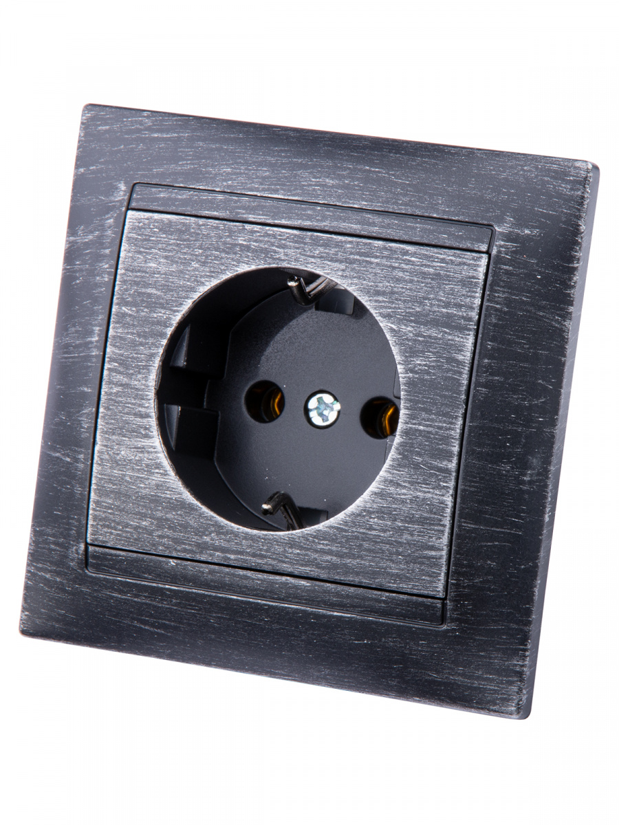 - Розетка 2П+З 16А 250В старинное серебро с/у, "Лама" TDM (10/120) (SQ1815-0664)