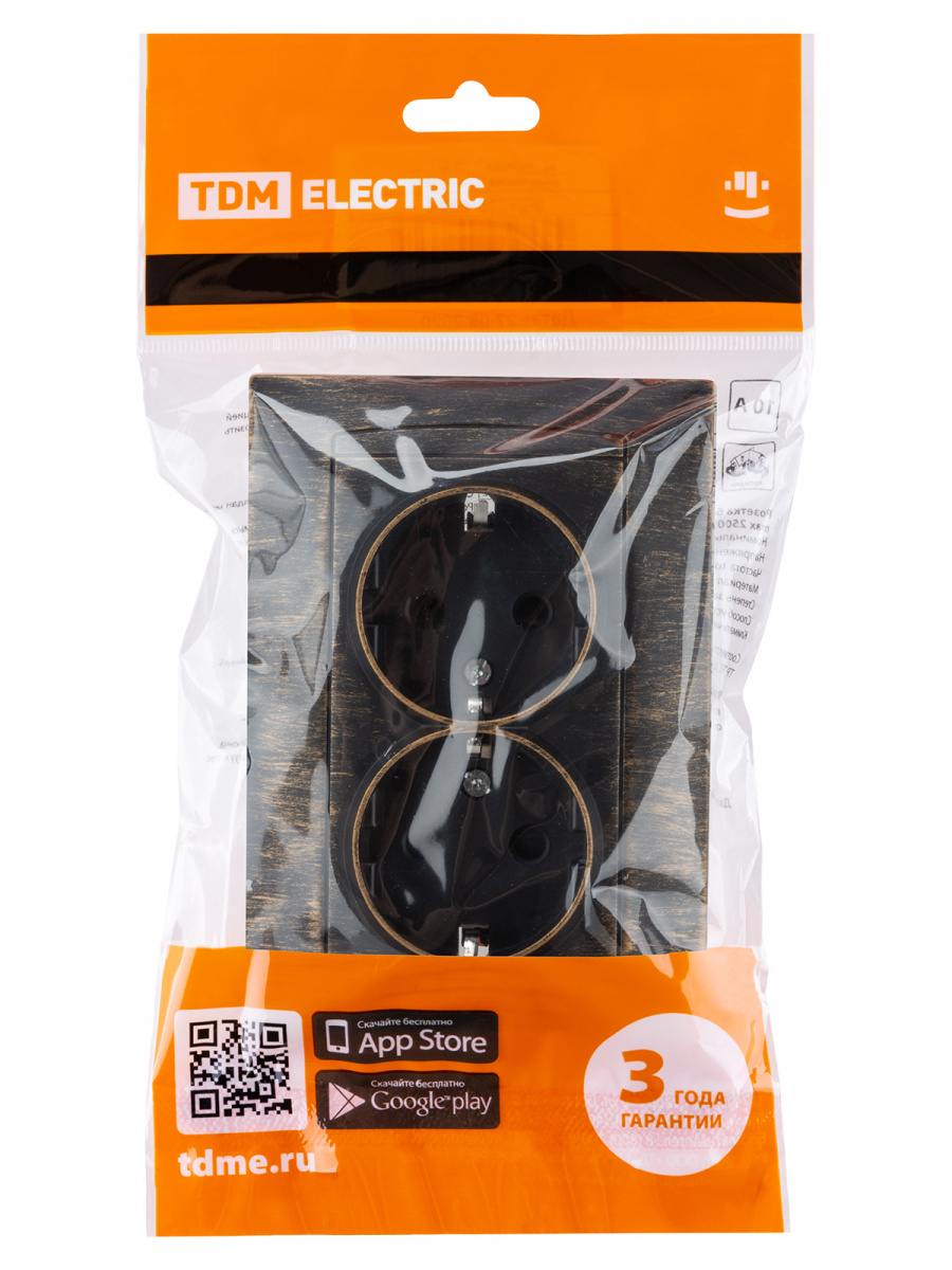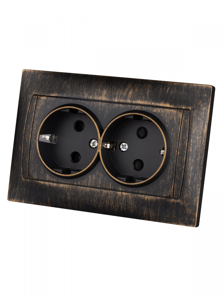 - Розетка двойная 2П+З 16А 250В с защ. шт. старинная бронза с/у, "Лама" (1/6) TDM (SQ1815-0754)