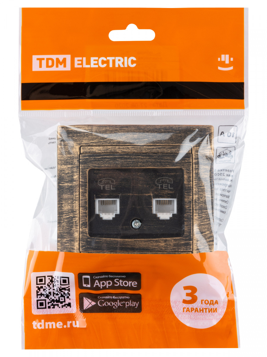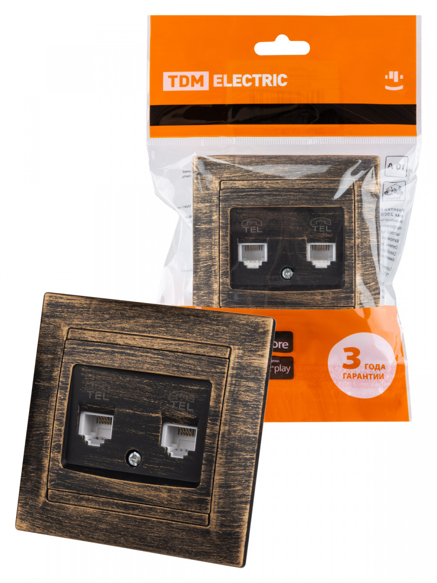 - Розетка двойная телефонная RJ11 старинная бронза с/у, "Лама" (1/10) TDM (SQ1815-0759)