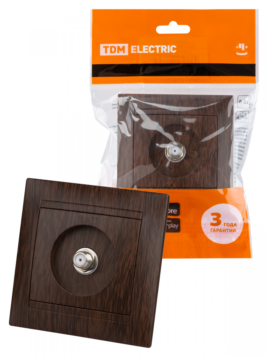 - Розетка SAT (F-разъем) 0-2400МГц венге "Лама" (10/120) TDM (SQ1815-0421)