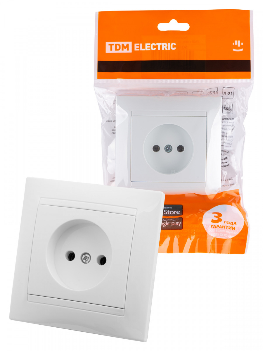 - Розетка 2П 10А 250В белая , с/у, "Лама" (10/100) TDM (SQ1815-0022)