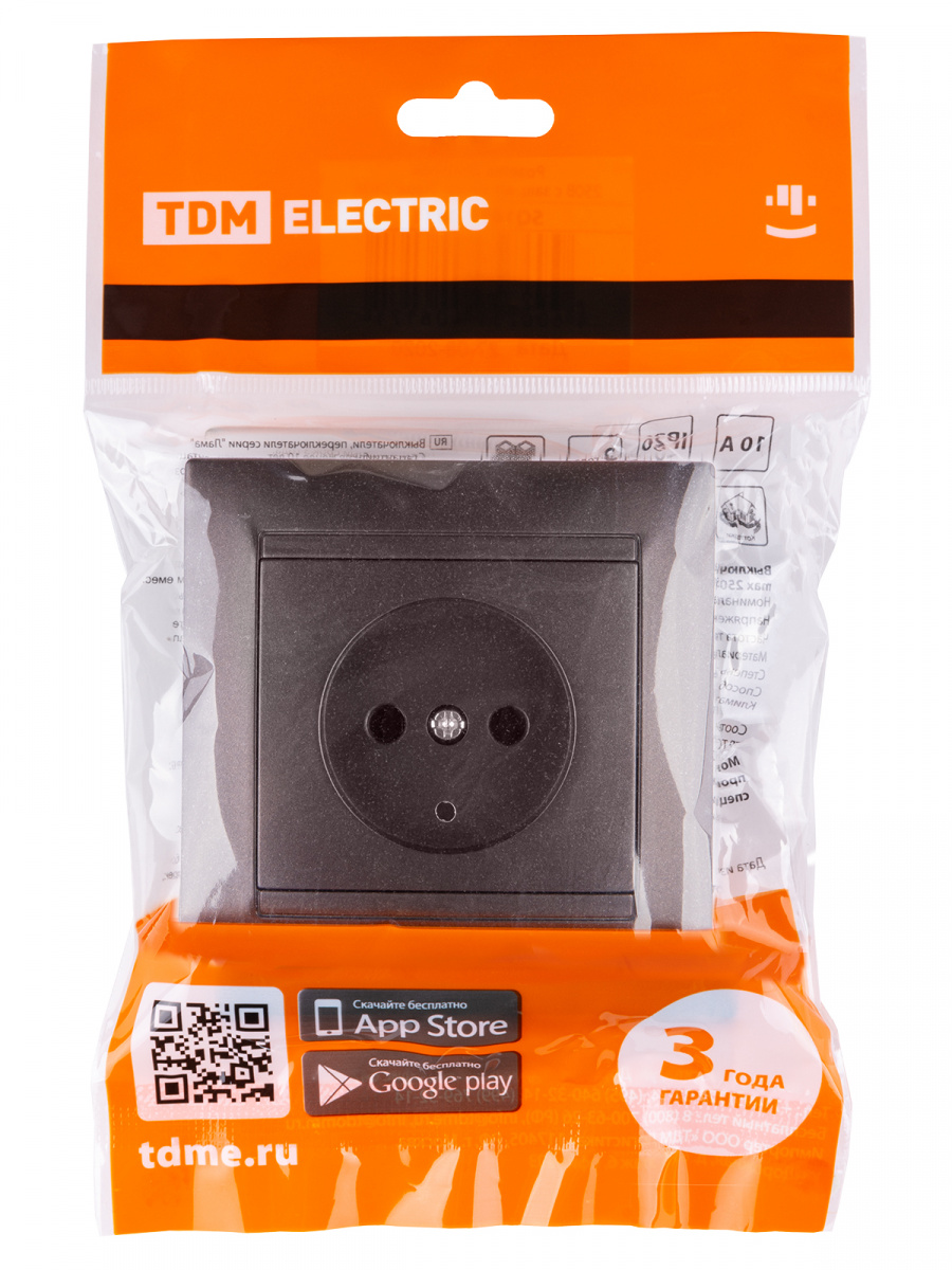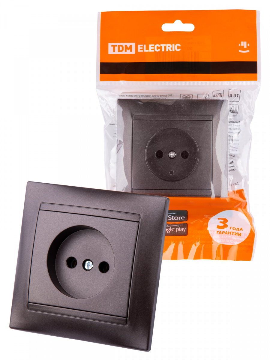 - Розетка 2П 10А 250В шоколад , с/у, "Лама" (10/120) TDM (SQ1815-0522)