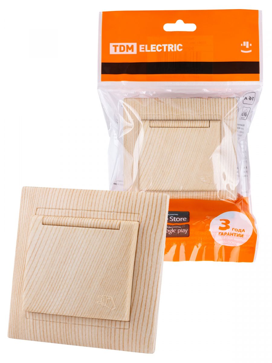 - Розетка 2П+З 16А 250В IP44 с крышкой сосна , с/у, "Лама" (10/120) TDM (SQ1815-0326)