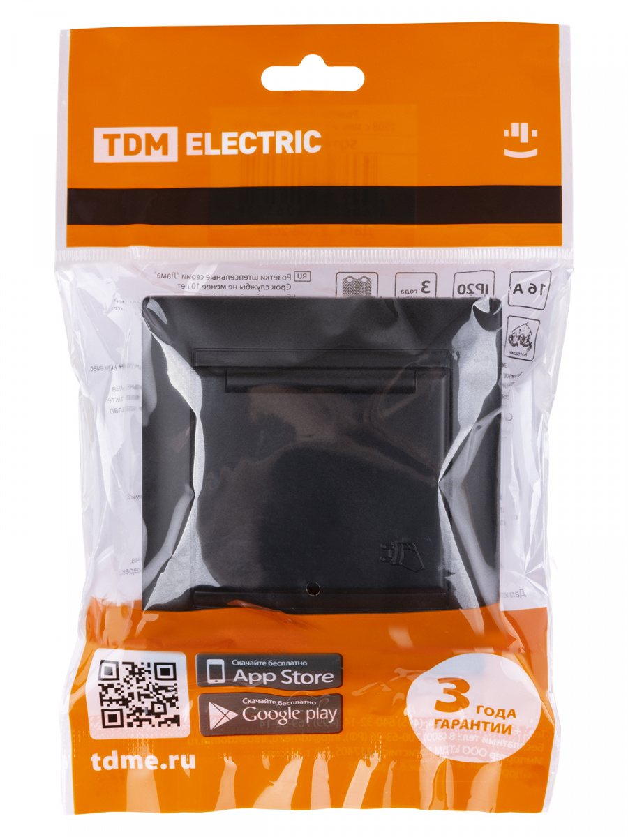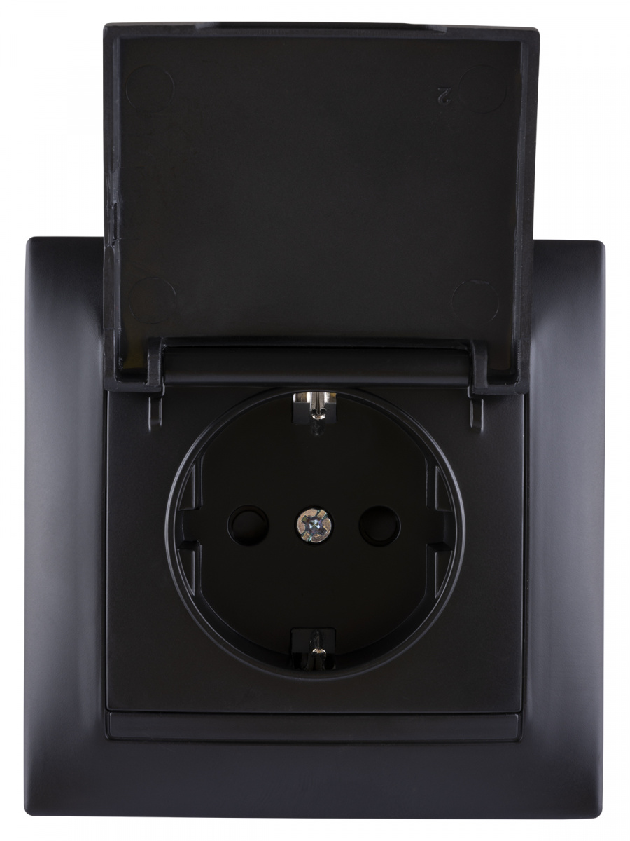 - Розетка 2П+З 16А 250В IP44 с защ. шт. с крышкой графит , с/у, "Лама" (10/120) TDM (SQ1815-0614)
