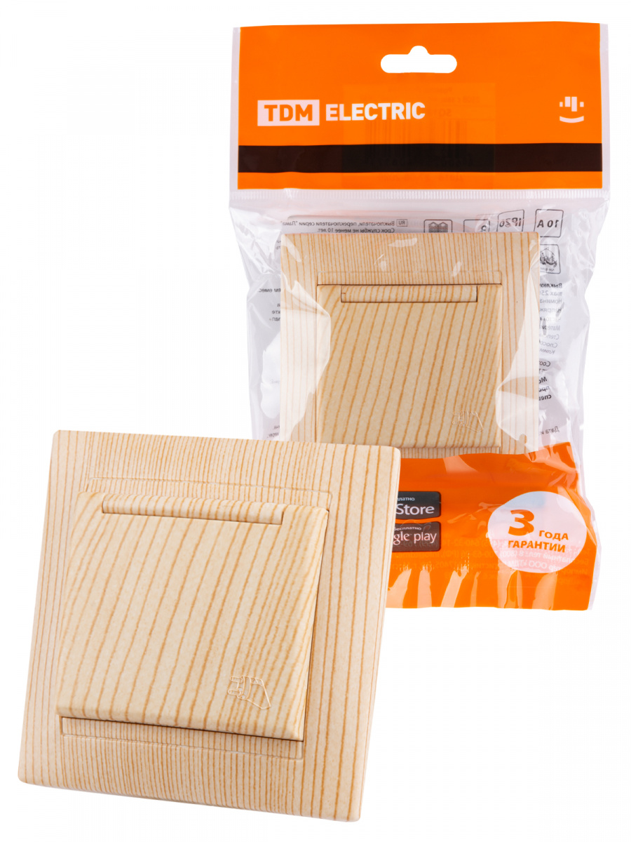- Розетка 2П+З 16А 250В IP44 с защ. шт. с крышкой сосна , с/у, "Лама" (10/120) TDM (SQ1815-0314)