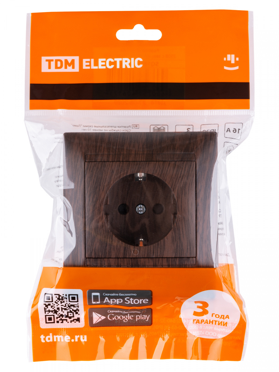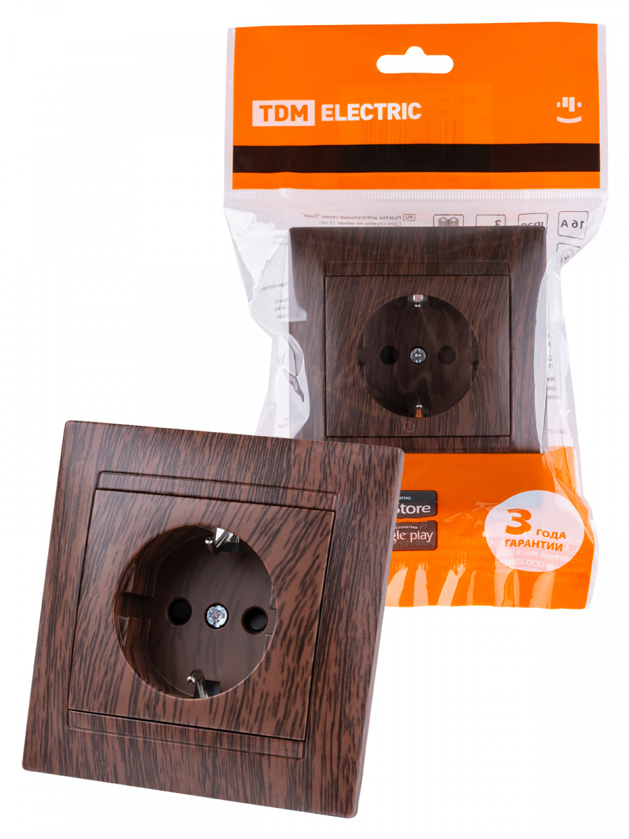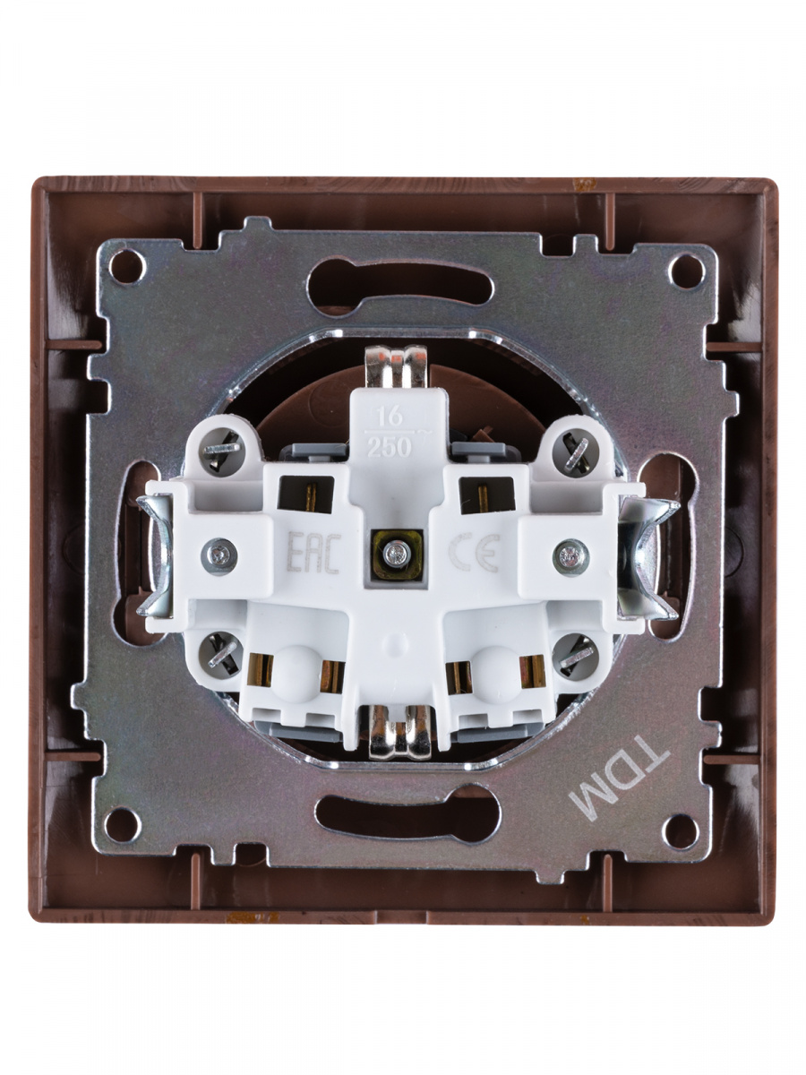 - Розетка 2П+З 16А 250В с защ. шт. венге , с/у, "Лама" (10/120) TDM (SQ1815-0411)