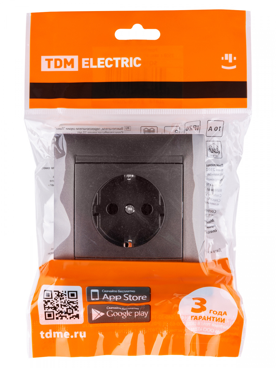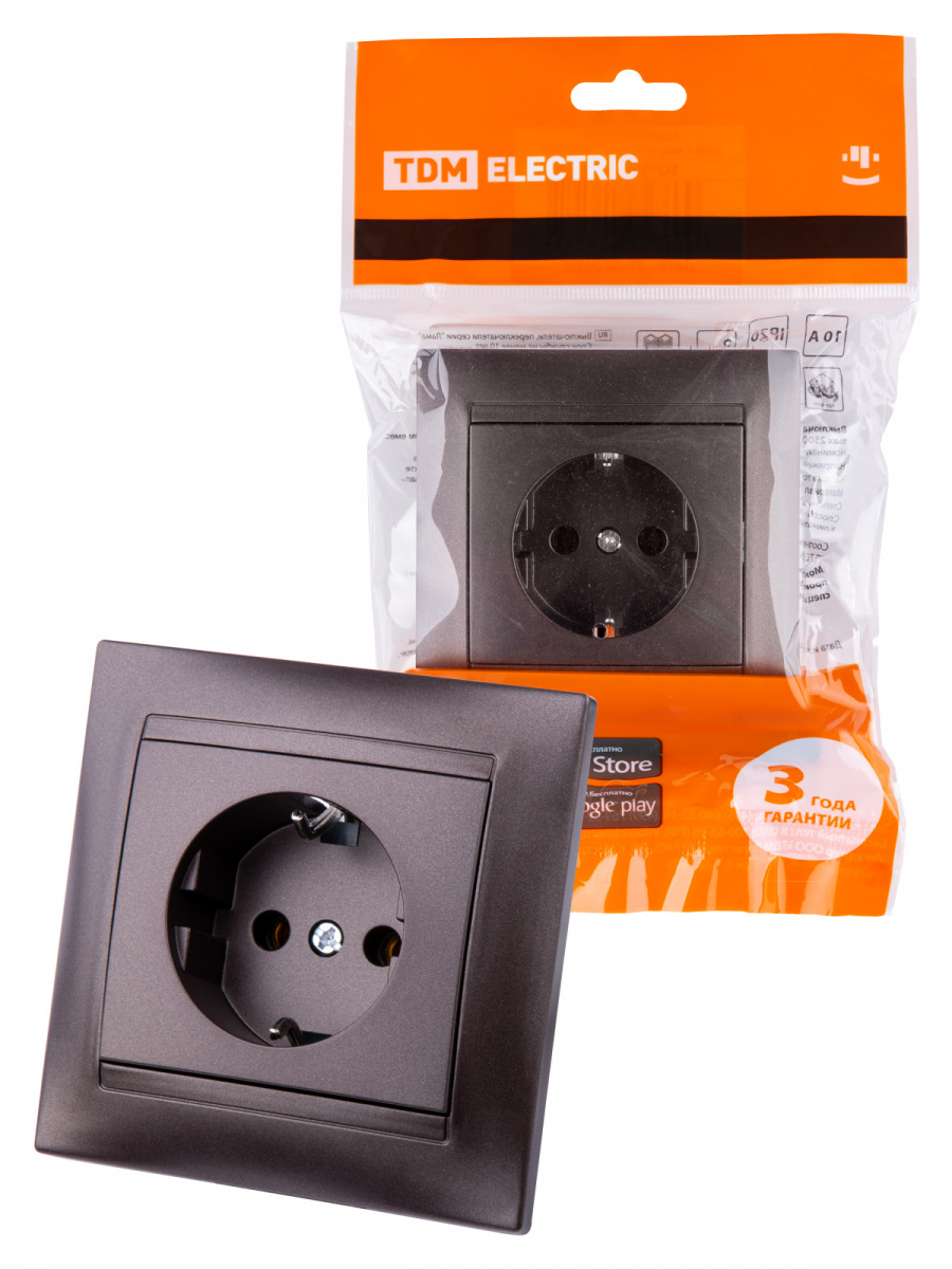 - Розетка 2П+З 16А 250В шоколад , с/у, "Лама" (10/120) TDM (SQ1815-0523)