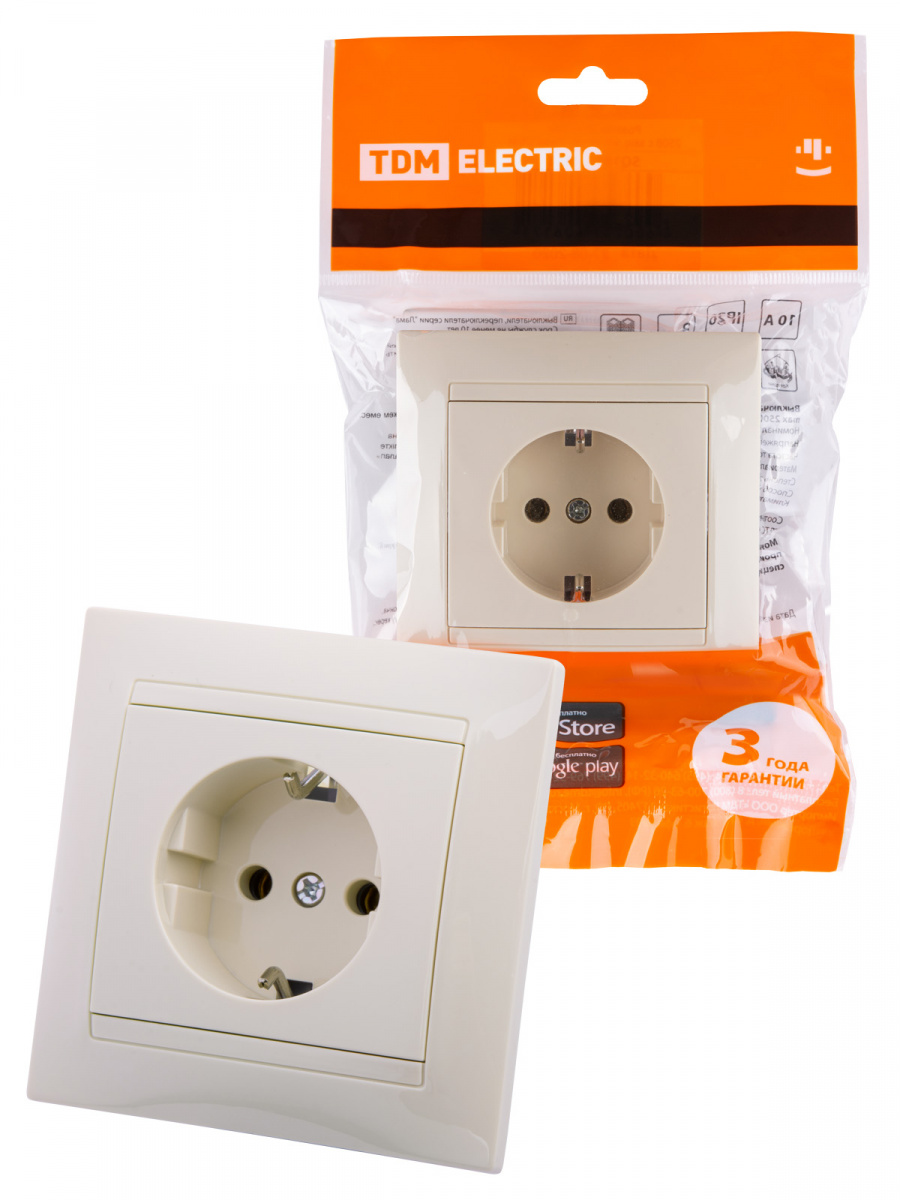 - Розетка 2П+З 16А 250В сл. кость , с/у, "Лама" (10/120) TDM (SQ1815-0123)