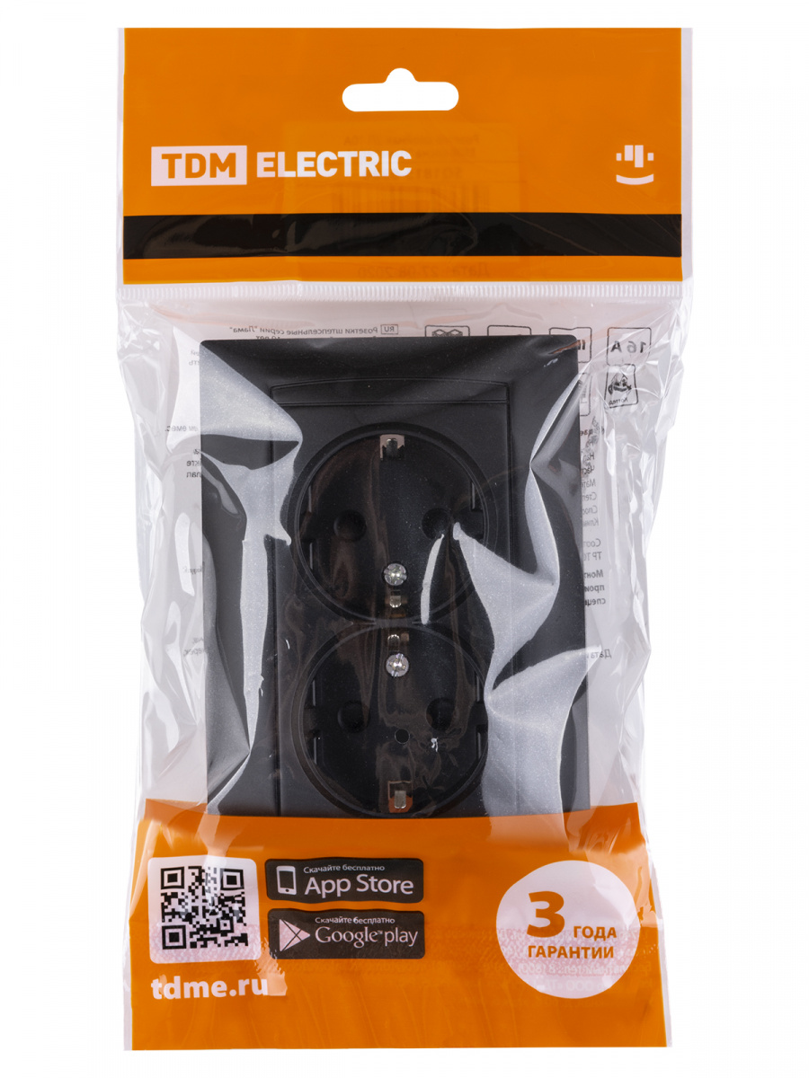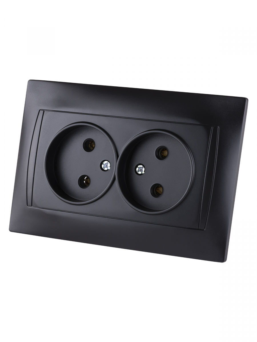 - Розетка двойная 2П 10А 250В графит , с/у, "Лама" (7/84) TDM (SQ1815-0624)