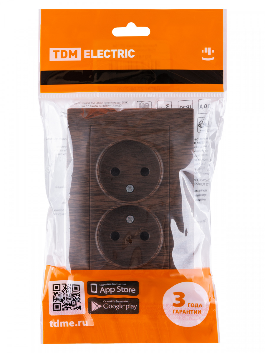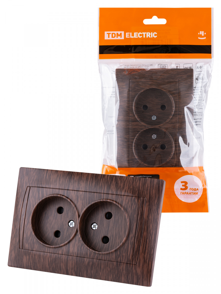 - Розетка двойная 2П 10А 250В с защ. шт. венге , с/у, "Лама" (7/84) TDM (SQ1815-0412)