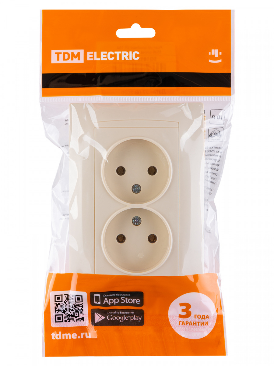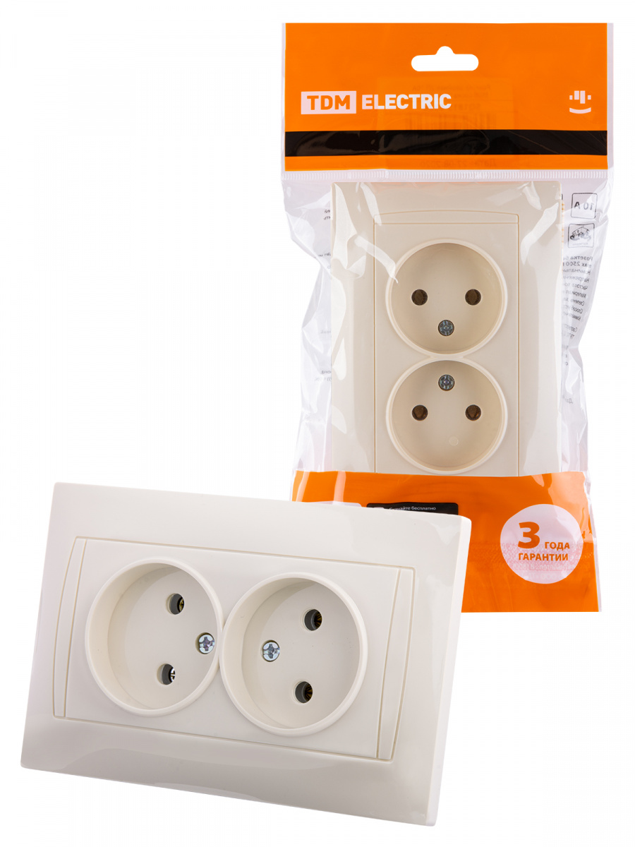 - Розетка двойная 2П 10А 250В сл. кость , с/у, "Лама" (7/84) TDM (SQ1815-0124)