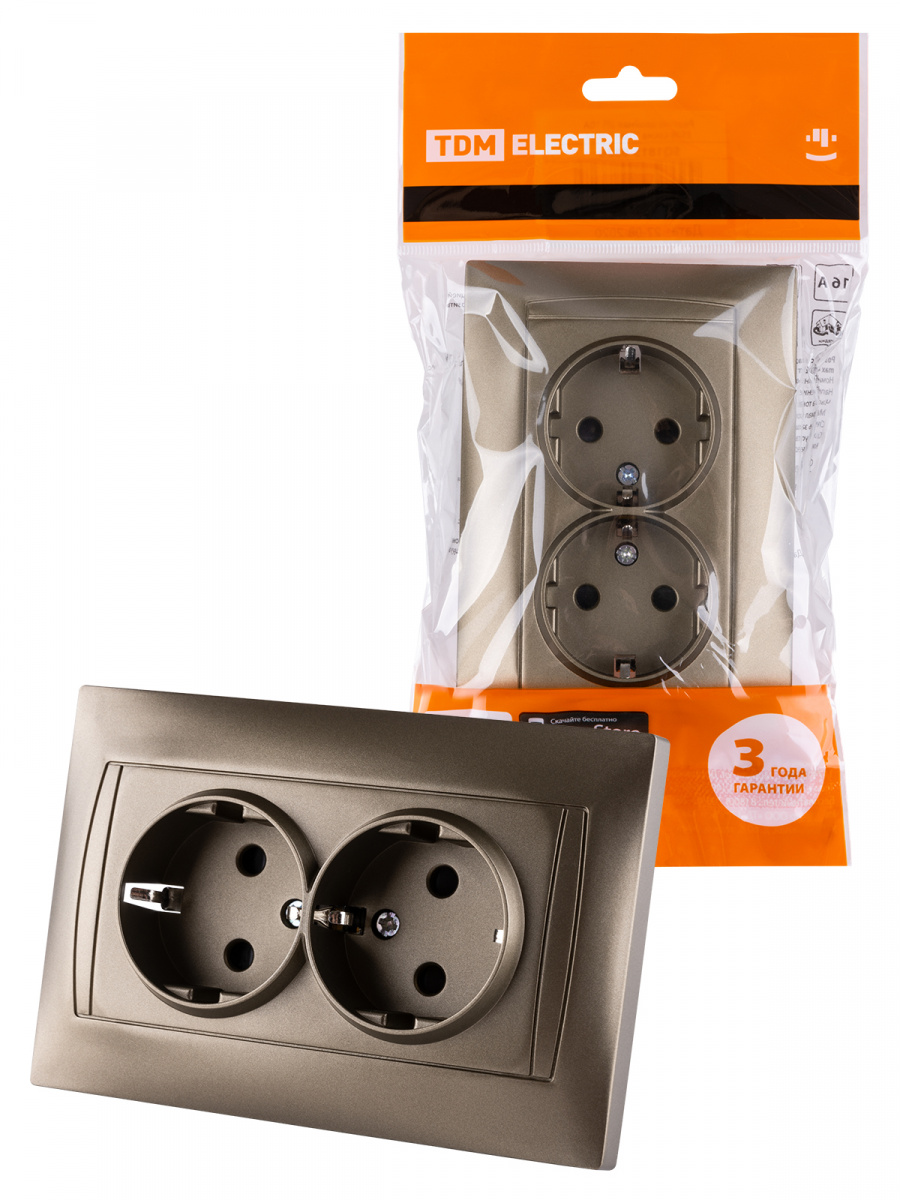 - Розетка двойная 2П+З 16А 250В с защ. шт. бронза , с/у, "Лама" (6/72) TDM (SQ1815-0713)