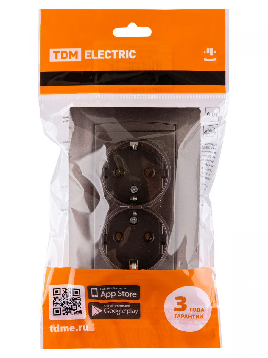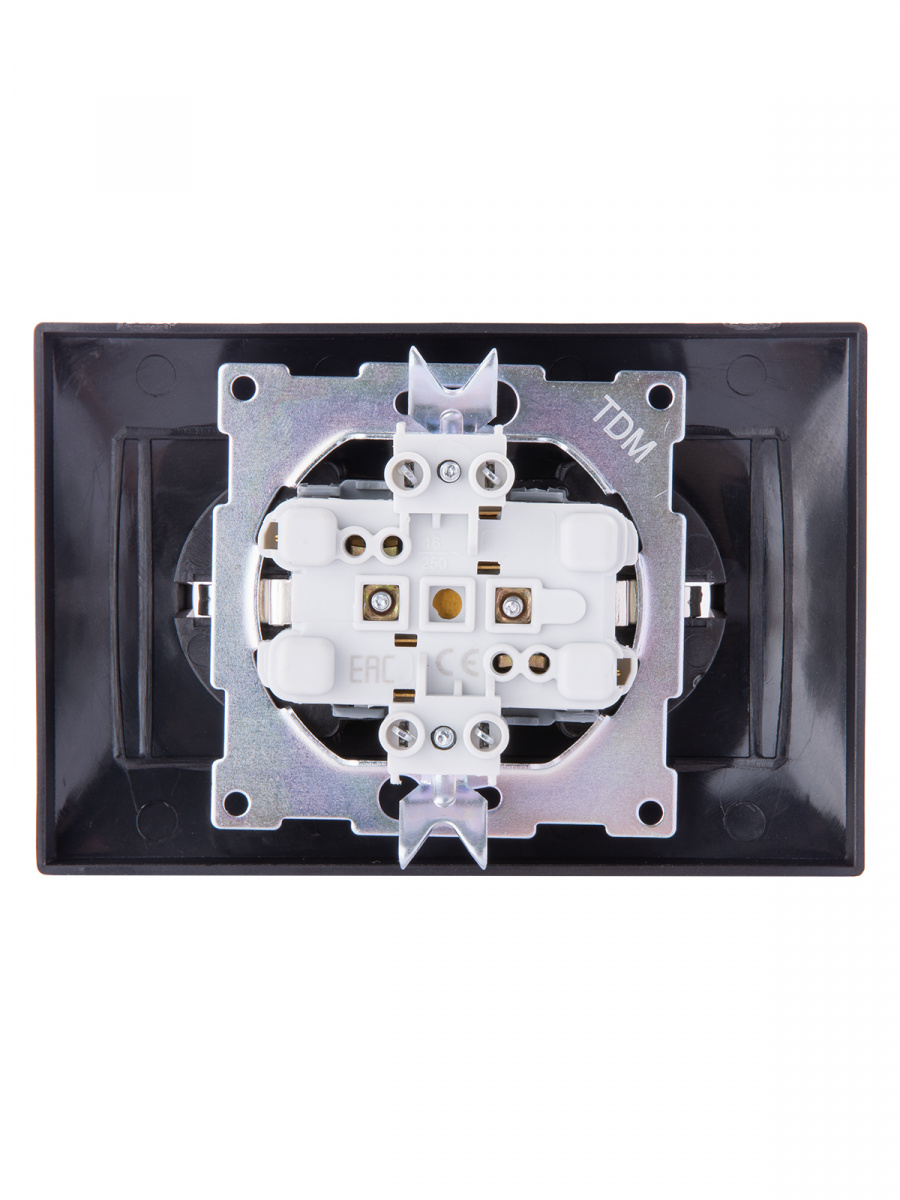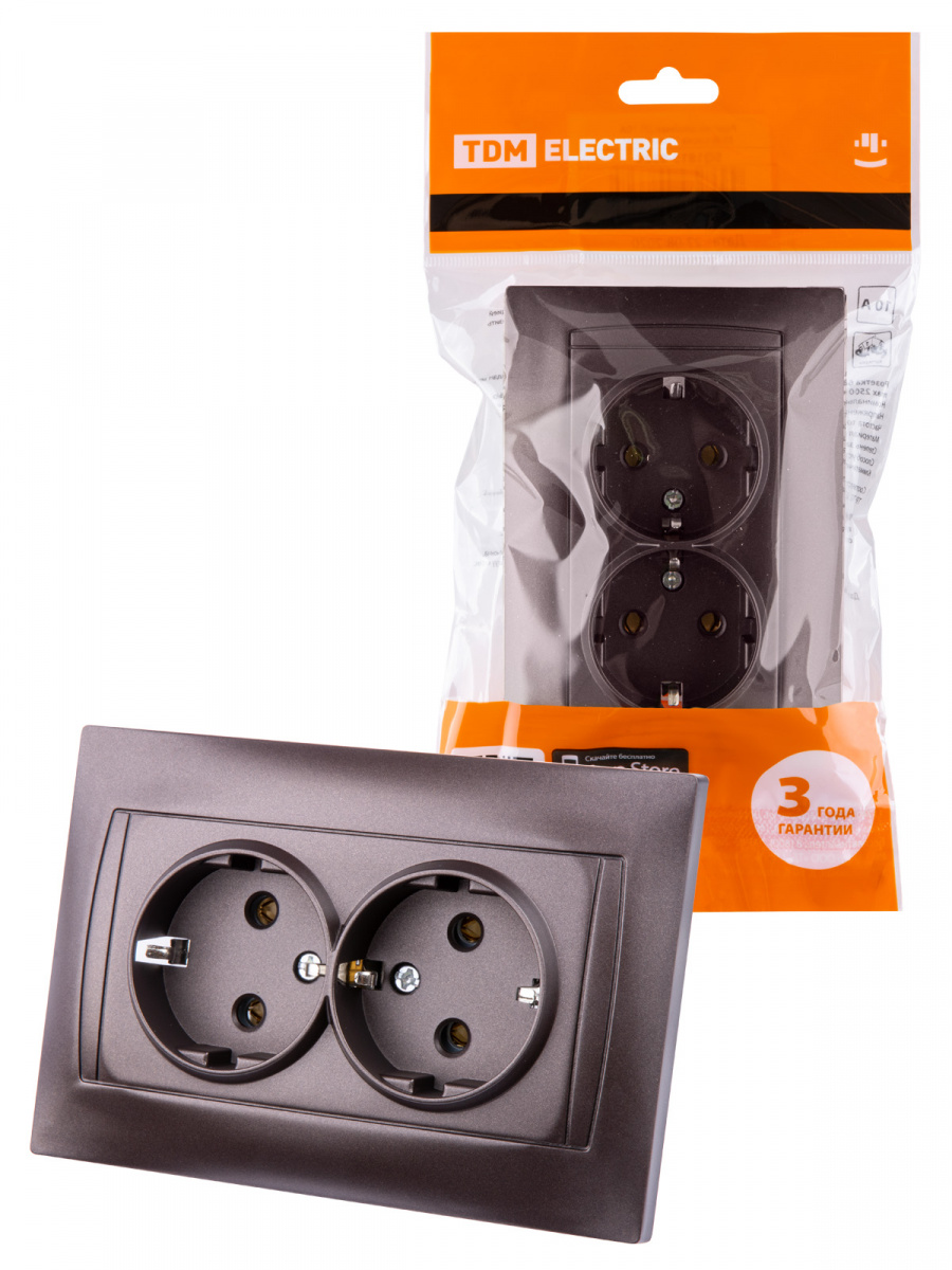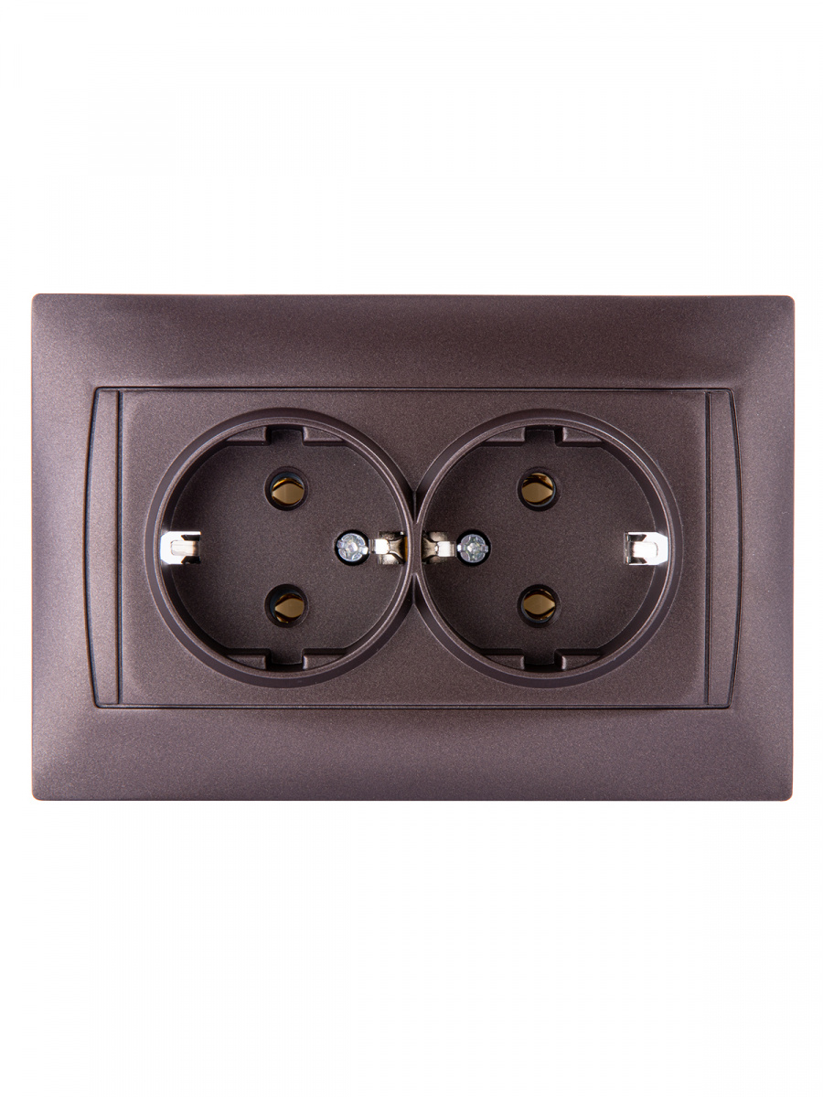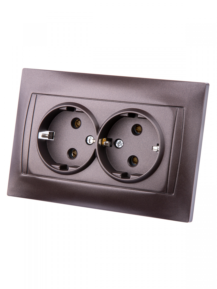 - Розетка двойная 2П+З 16А 250В шоколад , с/у, "Лама" (6/72) TDM (SQ1815-0525)