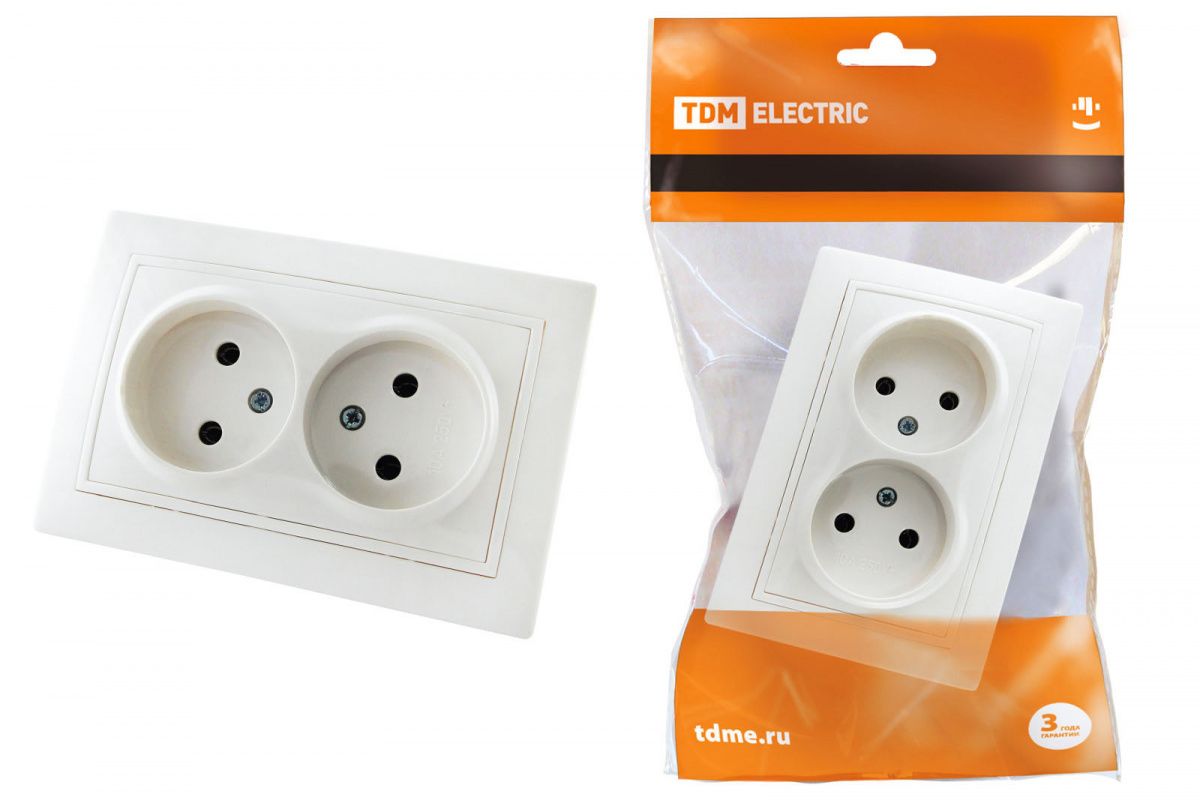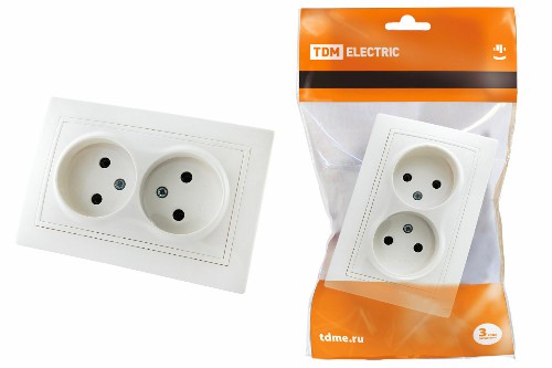 - Розетка скрытая установка, двойная 2П 10А 250В белая "Таймыр" TDM (10/100) (SQ1814-0013)