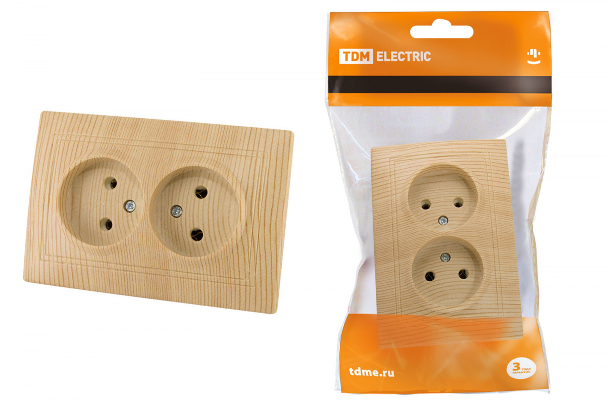 - Розетка скрытая установка, двойная 2П 10А 250В "ЭКО" (сосна) "Таймыр" (1/200) TDM (SQ1814-0213)