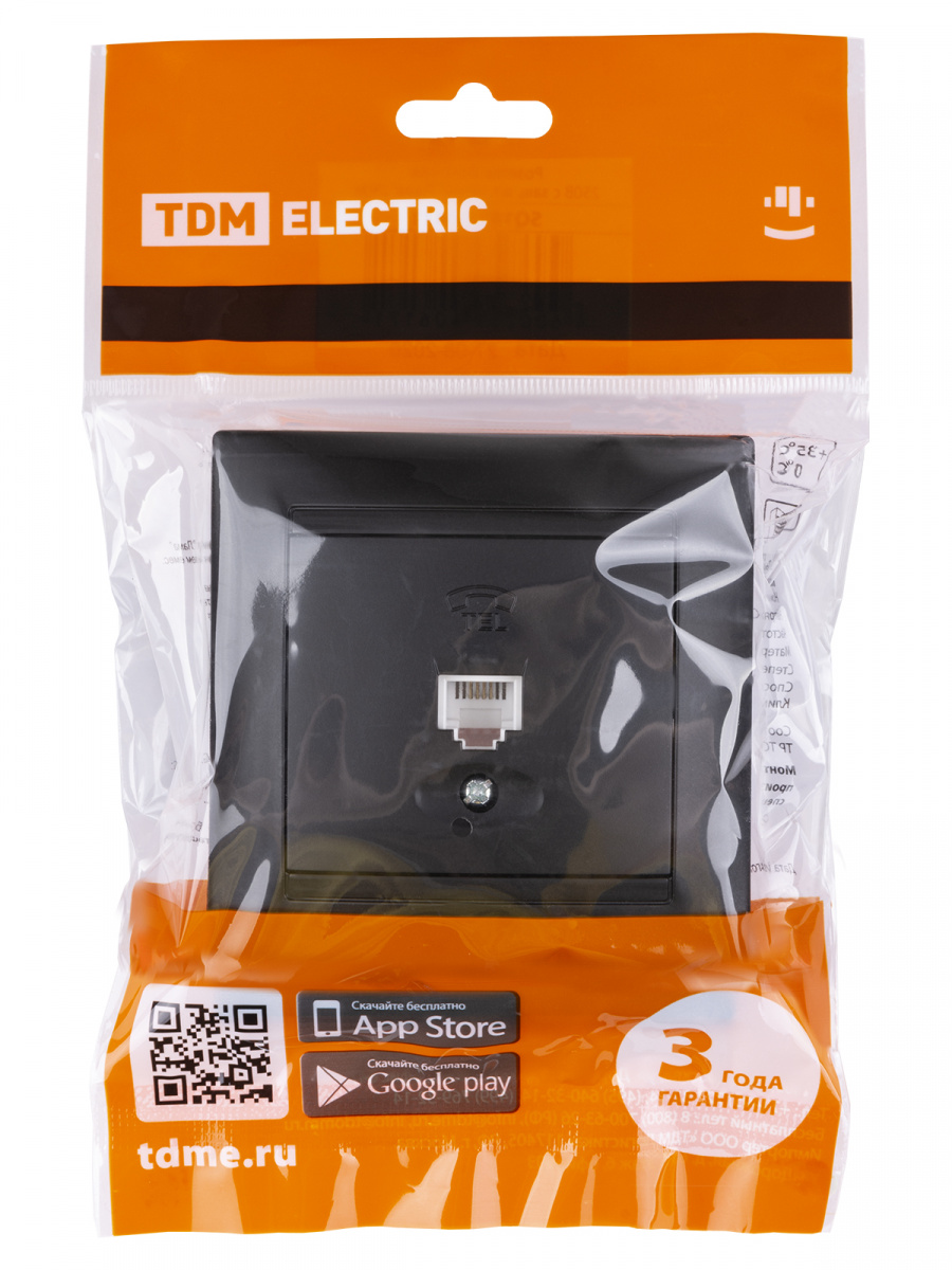- Розетка телефонная RJ11 графит , с/у, "Лама" (10/120) TDM (SQ1815-0615)
