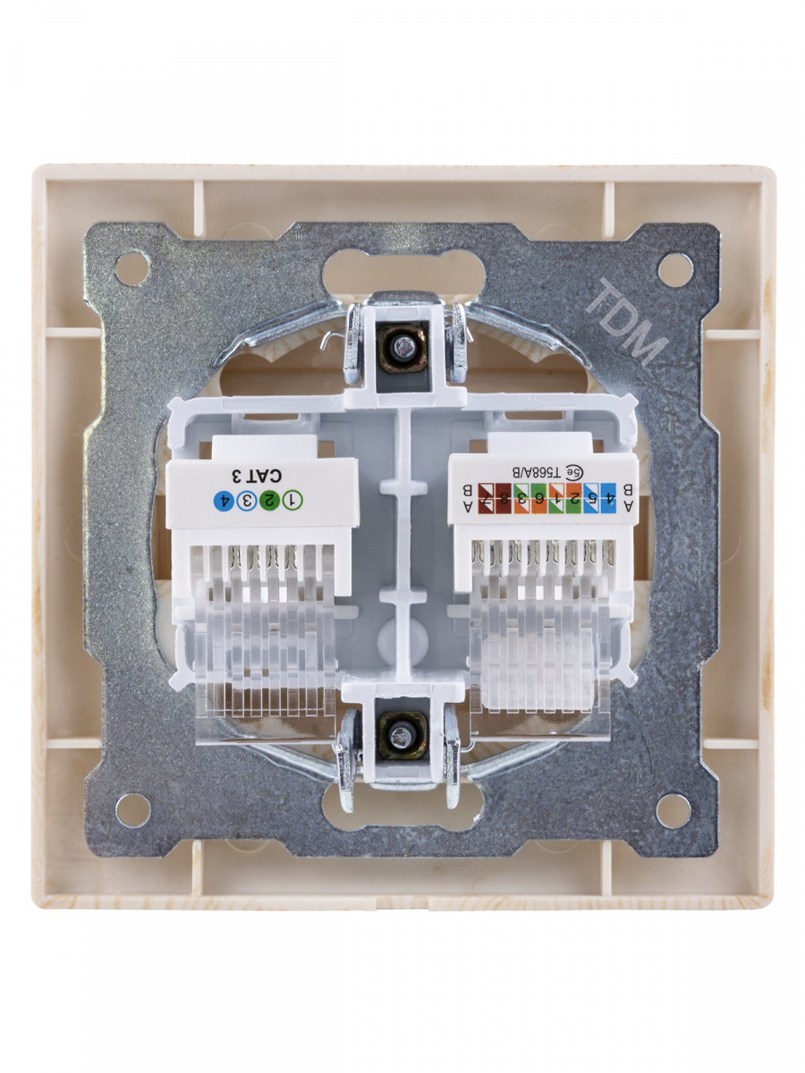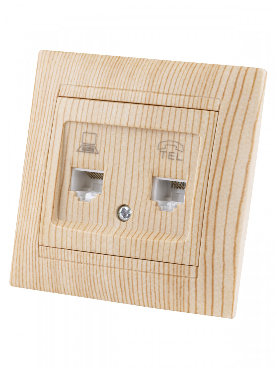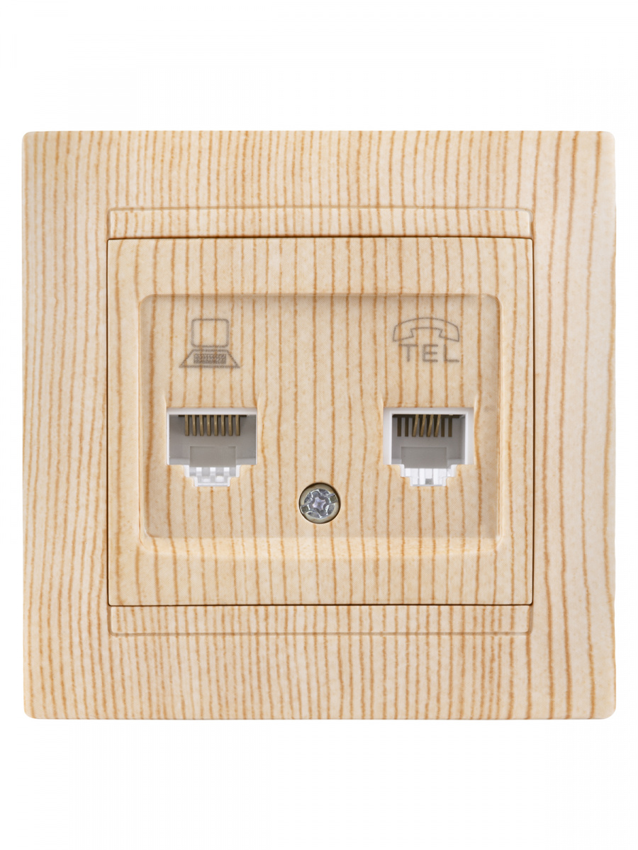 - Розетка телефонная RJ11 + компьютерная RJ45 сосна , с/у, "Лама" (10/120) TDM (SQ1815-0319)