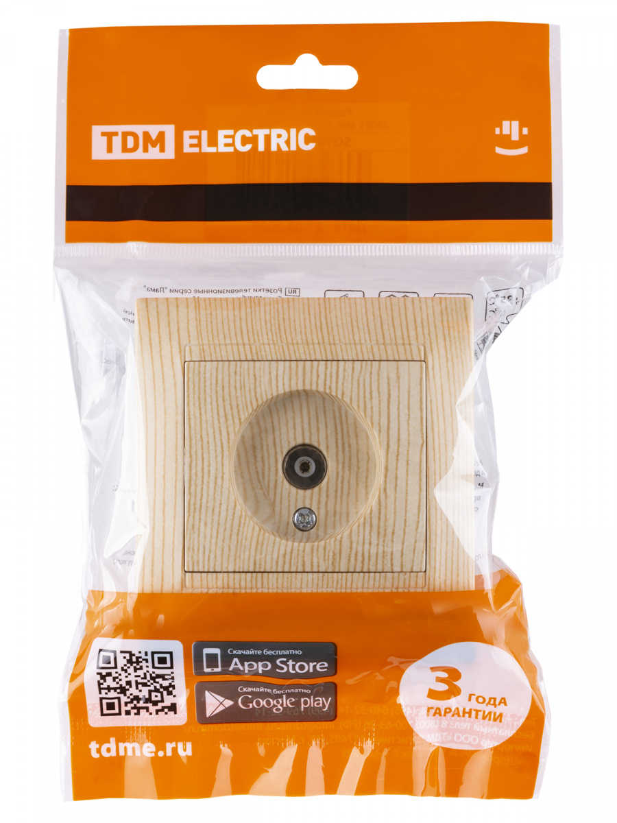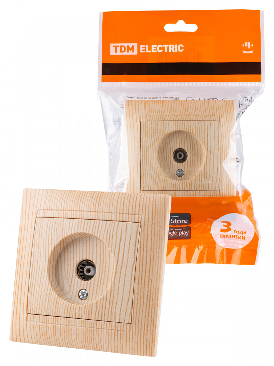- Розетка телевизионная простая (0-2400МГц, "мама") сосна , с/у, "Лама" (10/120) TDM (SQ1815-0317)