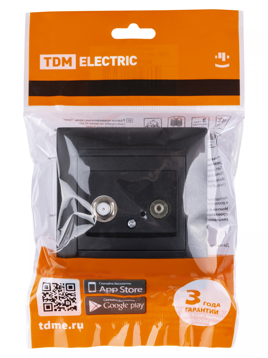 - Розетка TV ("мама") + SAT (F-разъем) 0-2400МГц графит , с/у, "Лама" (10/120) TDM (SQ1815-0620)