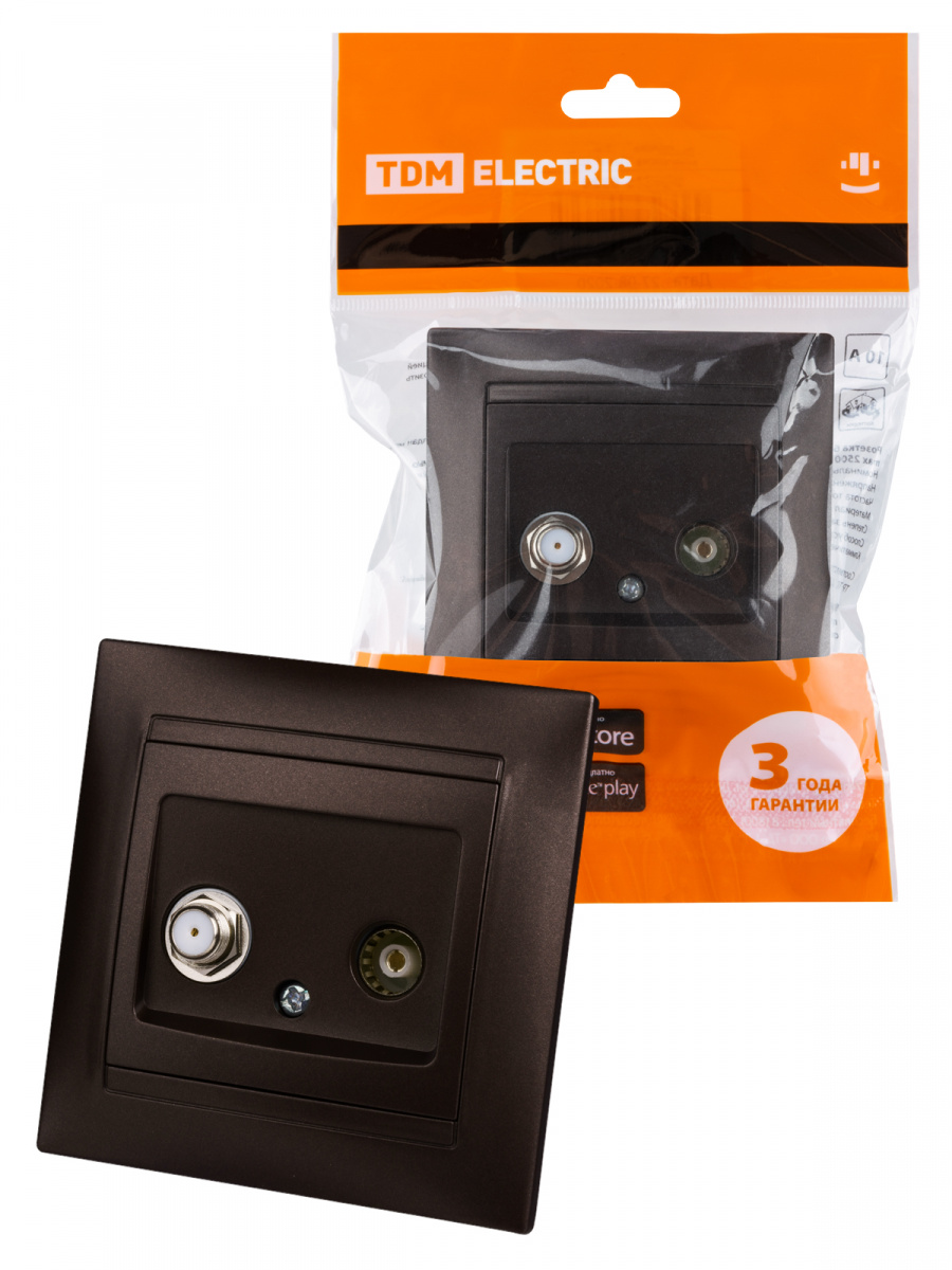 - Розетка TV ("мама") + SAT (F-разъем) 0-2400МГц шоколад , с/у, "Лама" (10/120) TDM (SQ1815-0520)