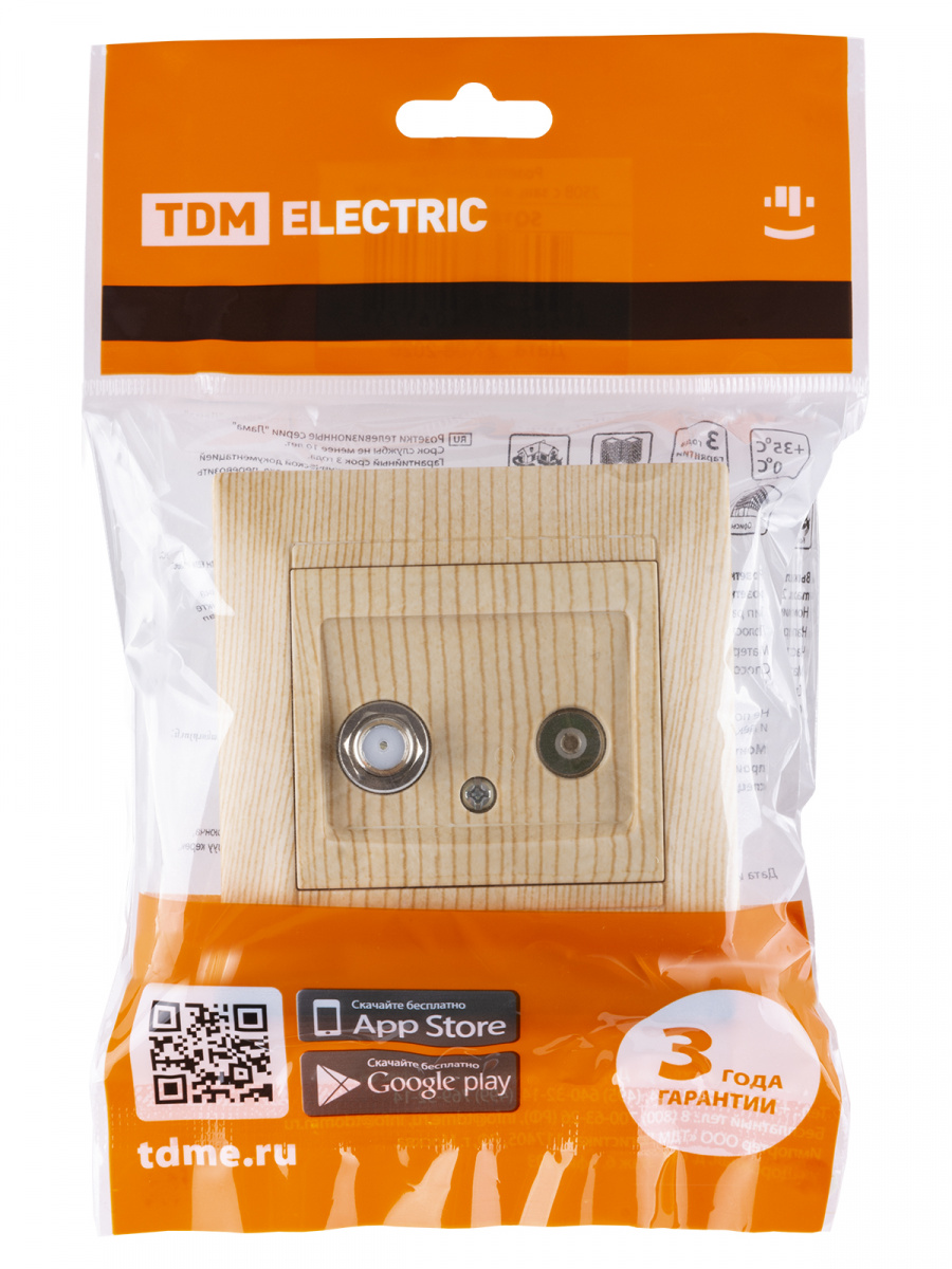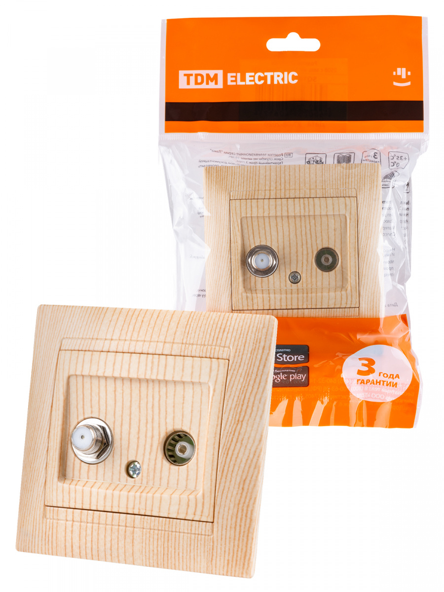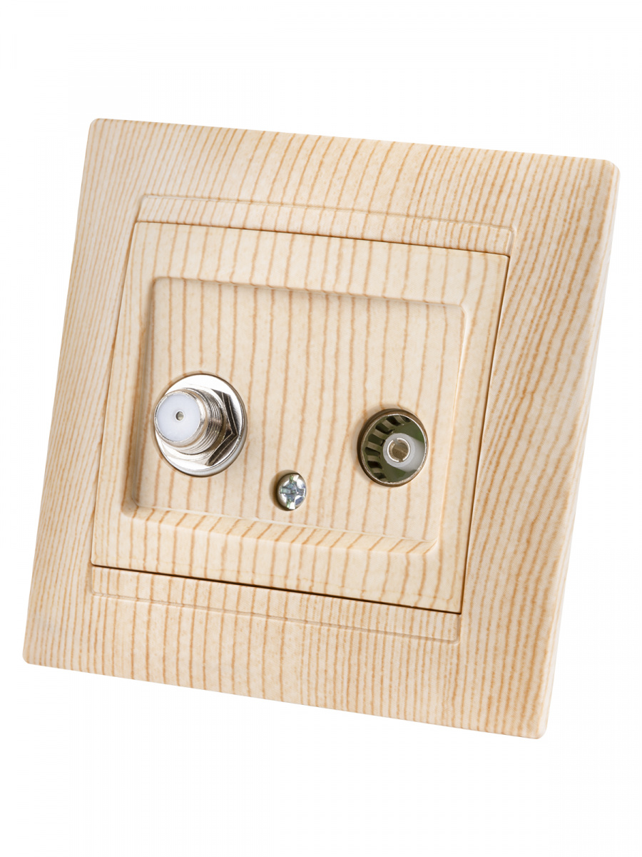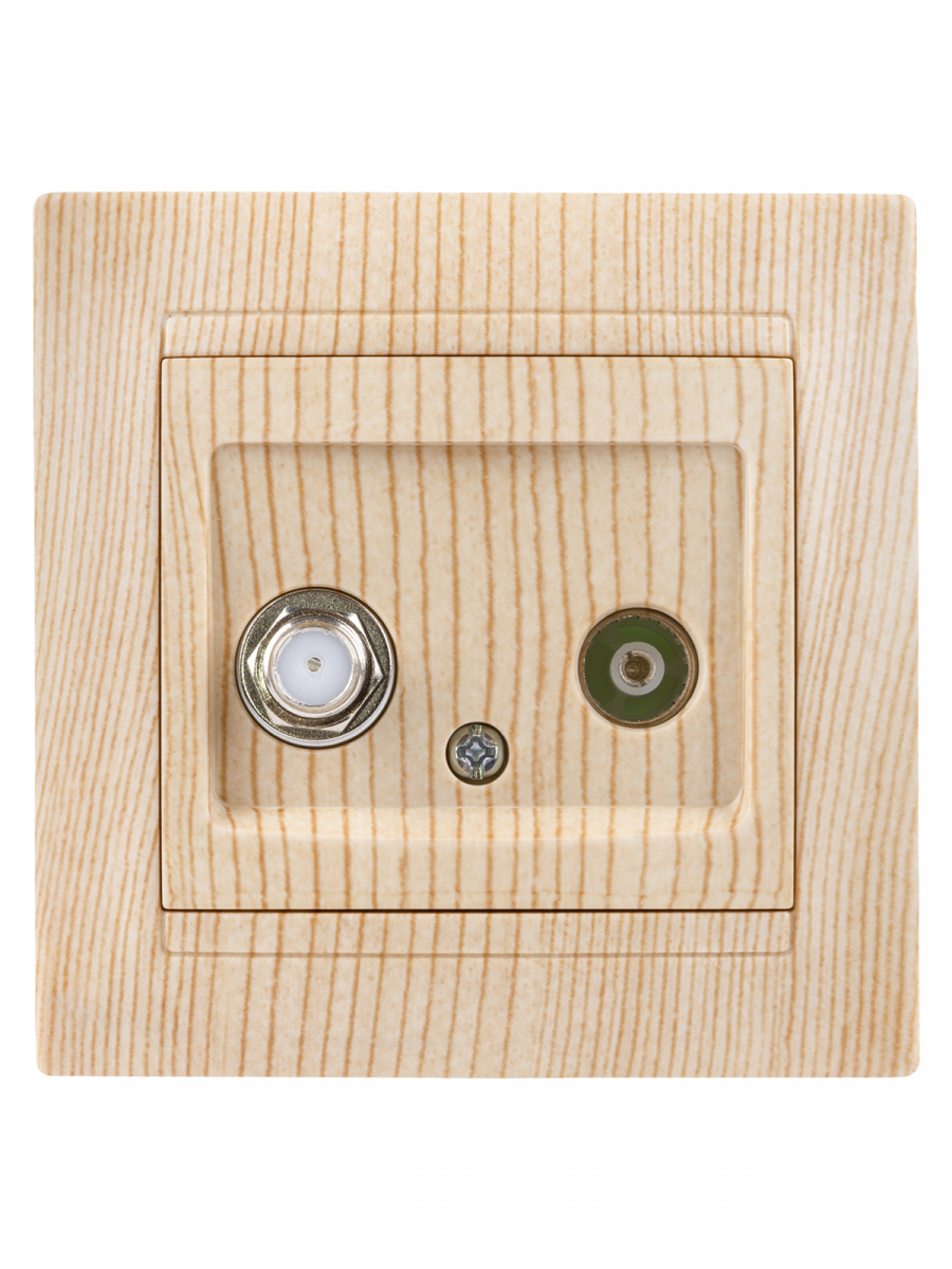 - Розетка TV ("мама") + SAT (F-разъем) 0-2400МГц сосна , с/у, "Лама" (10/120) TDM (SQ1815-0320)