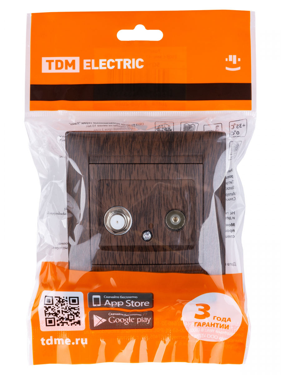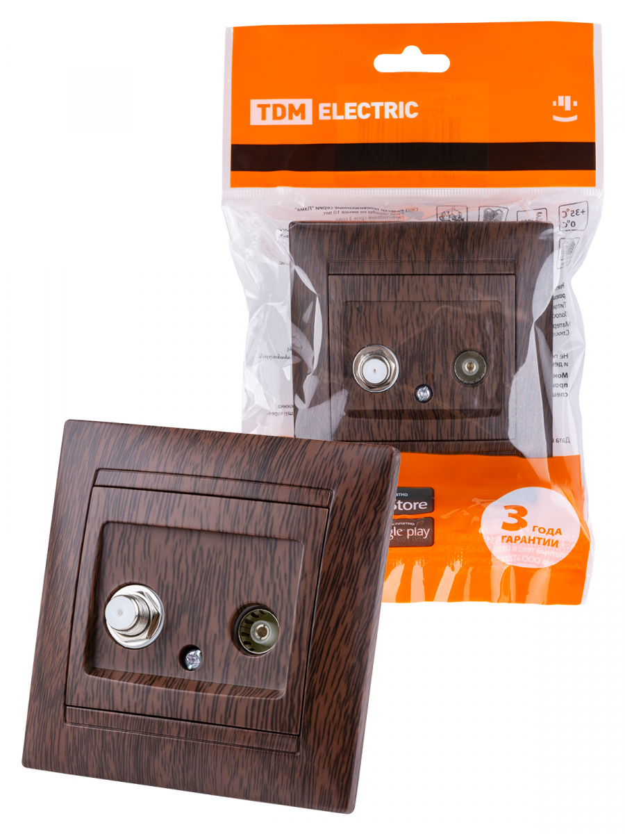 - Розетка TV ("мама") + SAT (F-разъем) 0-2400МГц венге , с/у, "Лама" (10/120) TDM (SQ1815-0420)