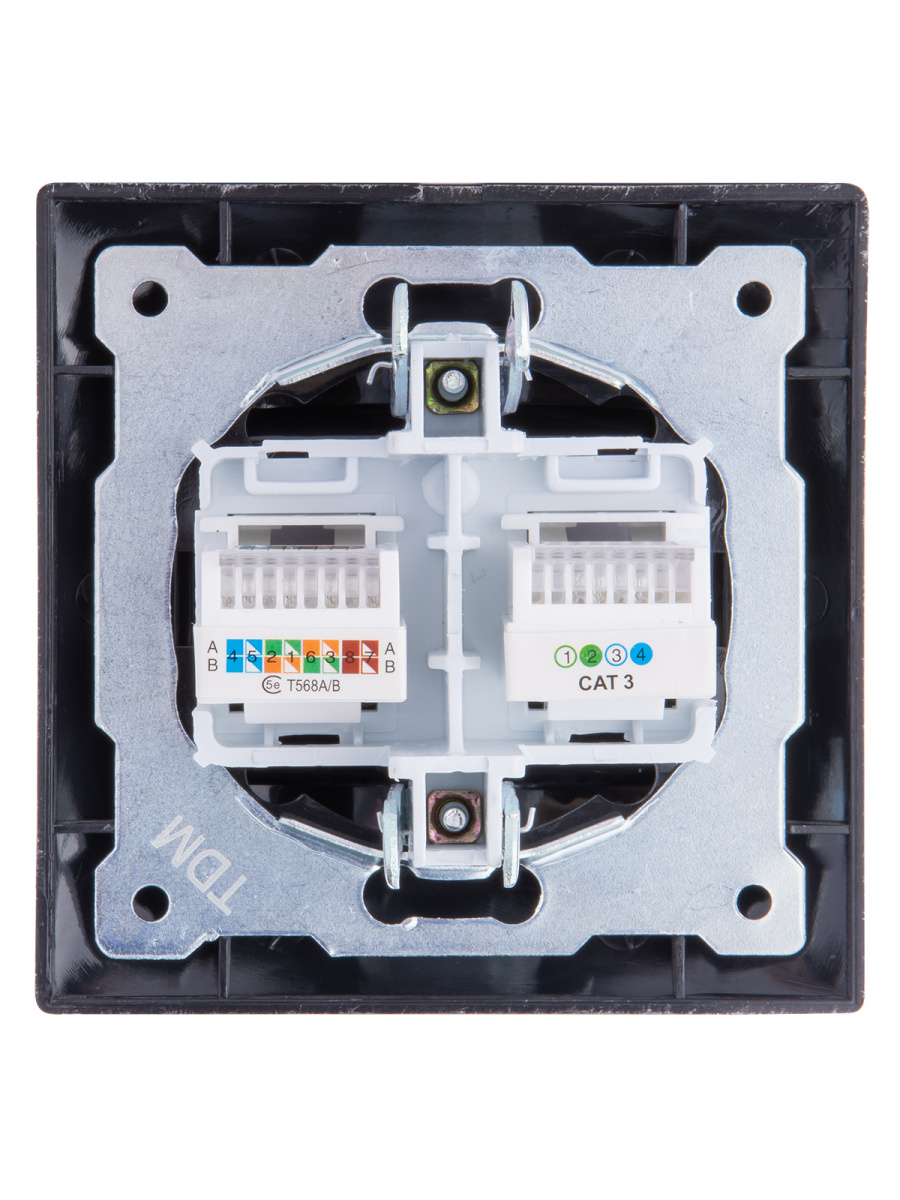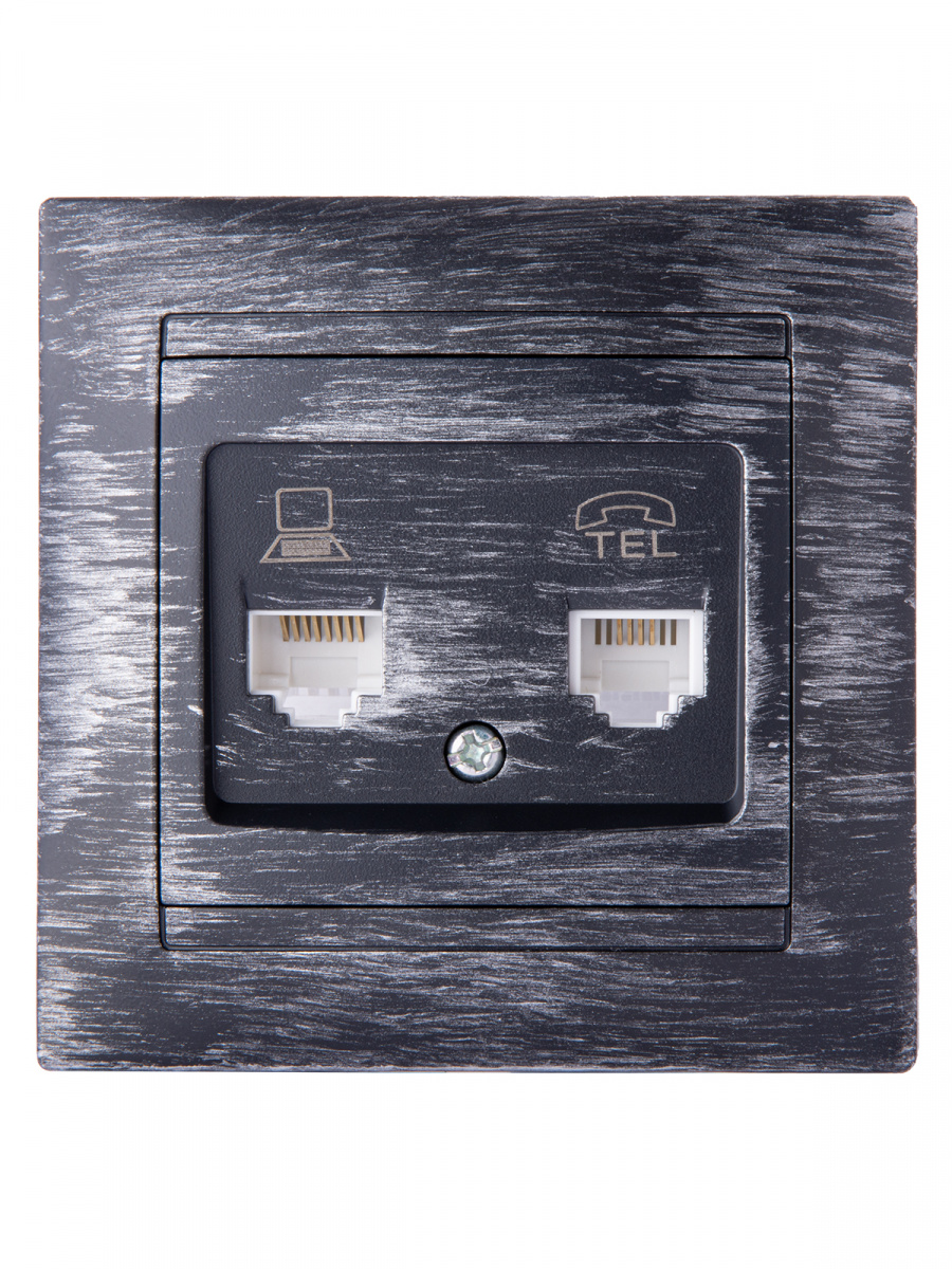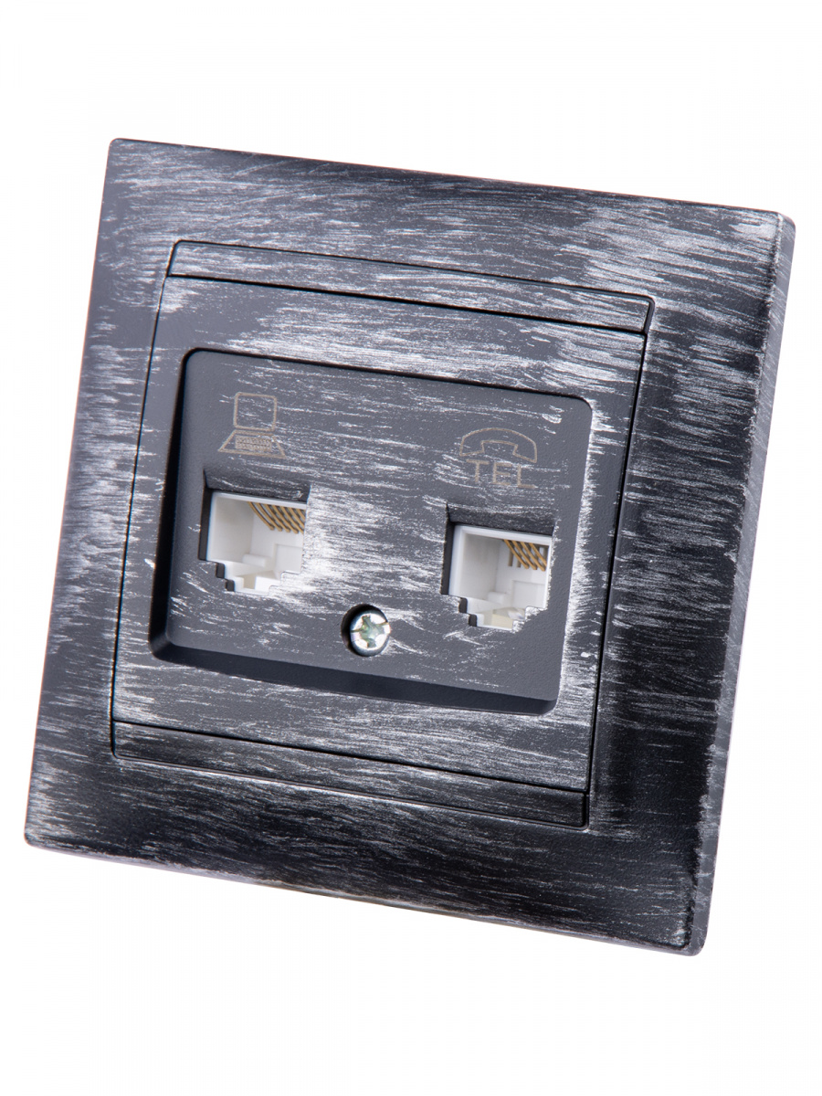 - Розетка телефонная RJ11 + компьютерная RJ45 старинное серебро с/у, "Лама" (1/10) TDM (SQ1815-0660)