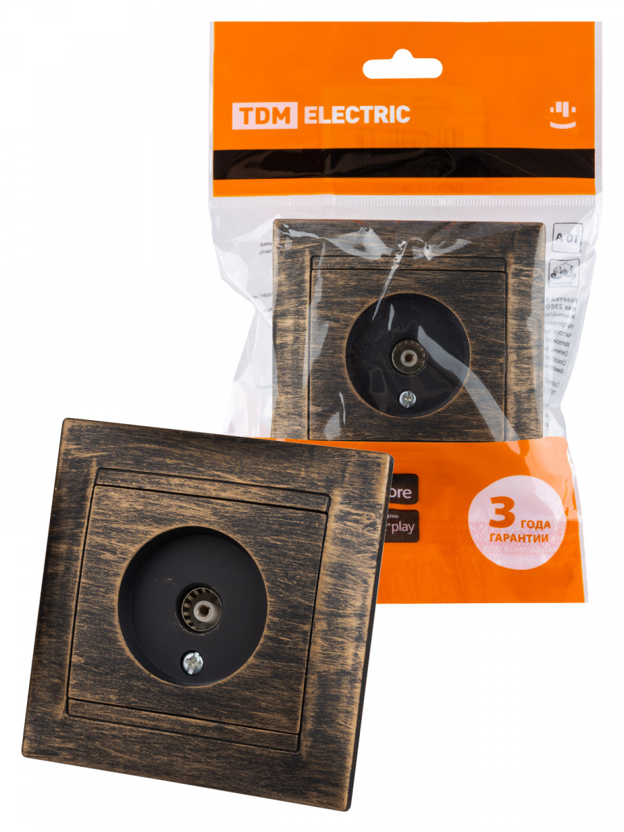 - Розетка телевизионная простая (0-2400МГц, "мама") старинная бронза с/у, "Лама" (1/10) TDM (SQ1815-0758)