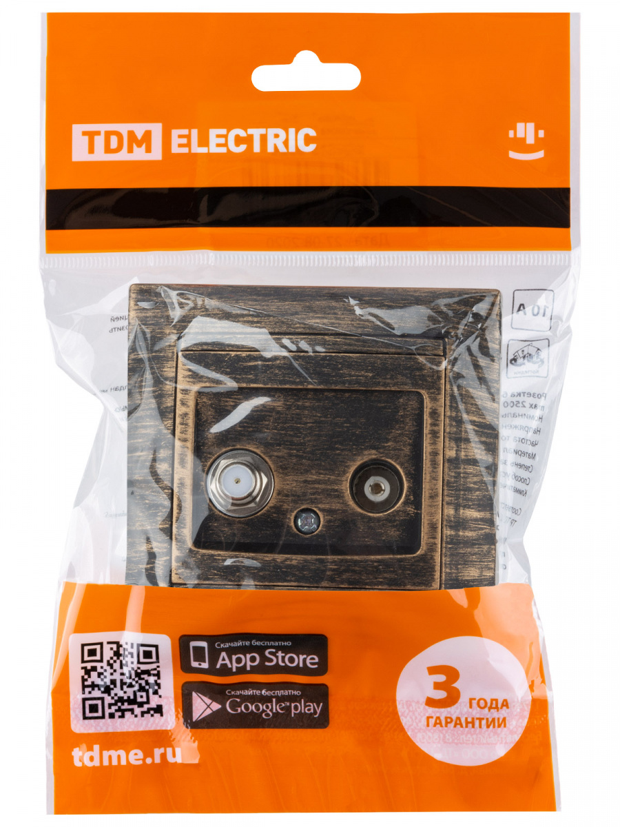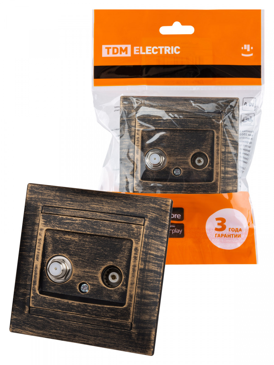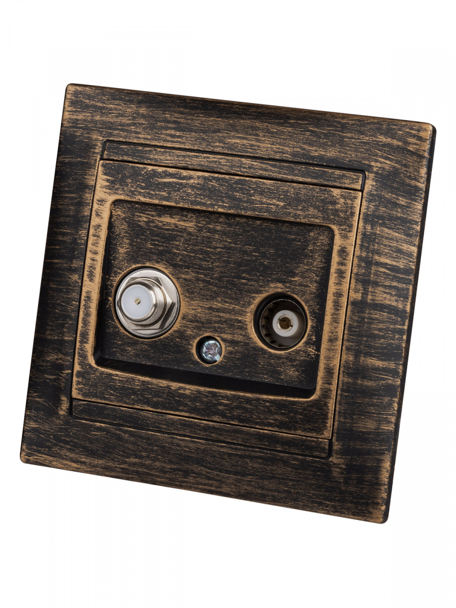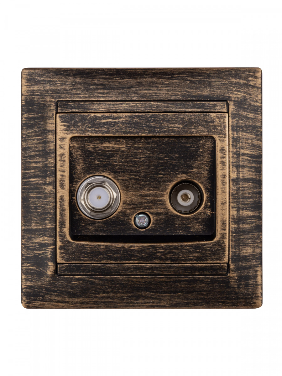 - Розетка TV ("мама") + SAT (F-разъем) 0-2400МГц старинная бронза с/у, "Лама" (1/10) TDM (SQ1815-0761)