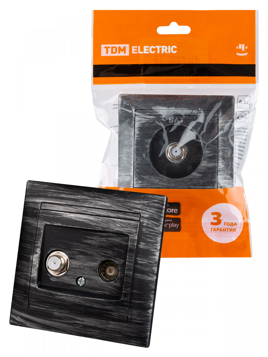 - Розетка TV ("мама") + SAT (F-разъем) 0-2400МГц старинное серебро с/у, "Лама" (1/10) TDM (SQ1815-0661)