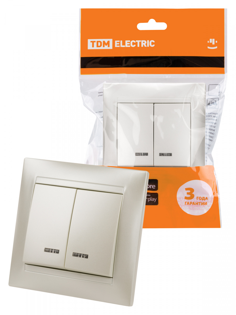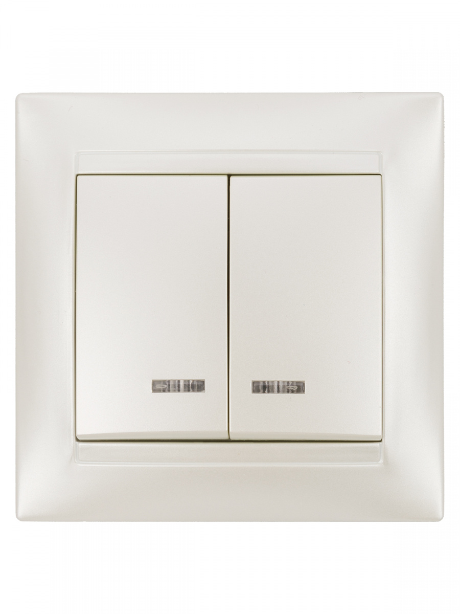 - Выключатель 2 кл. с подсветкой 10А перламутр "Лама" (10/120) TDM (SQ1815-0805)
