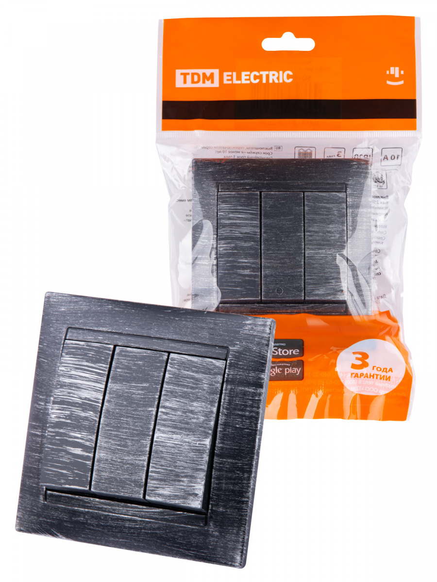 - Выключатель 3-х кл. 10А старинное серебро с/у, "Лама" (1/10) TDM (SQ1815-0645)