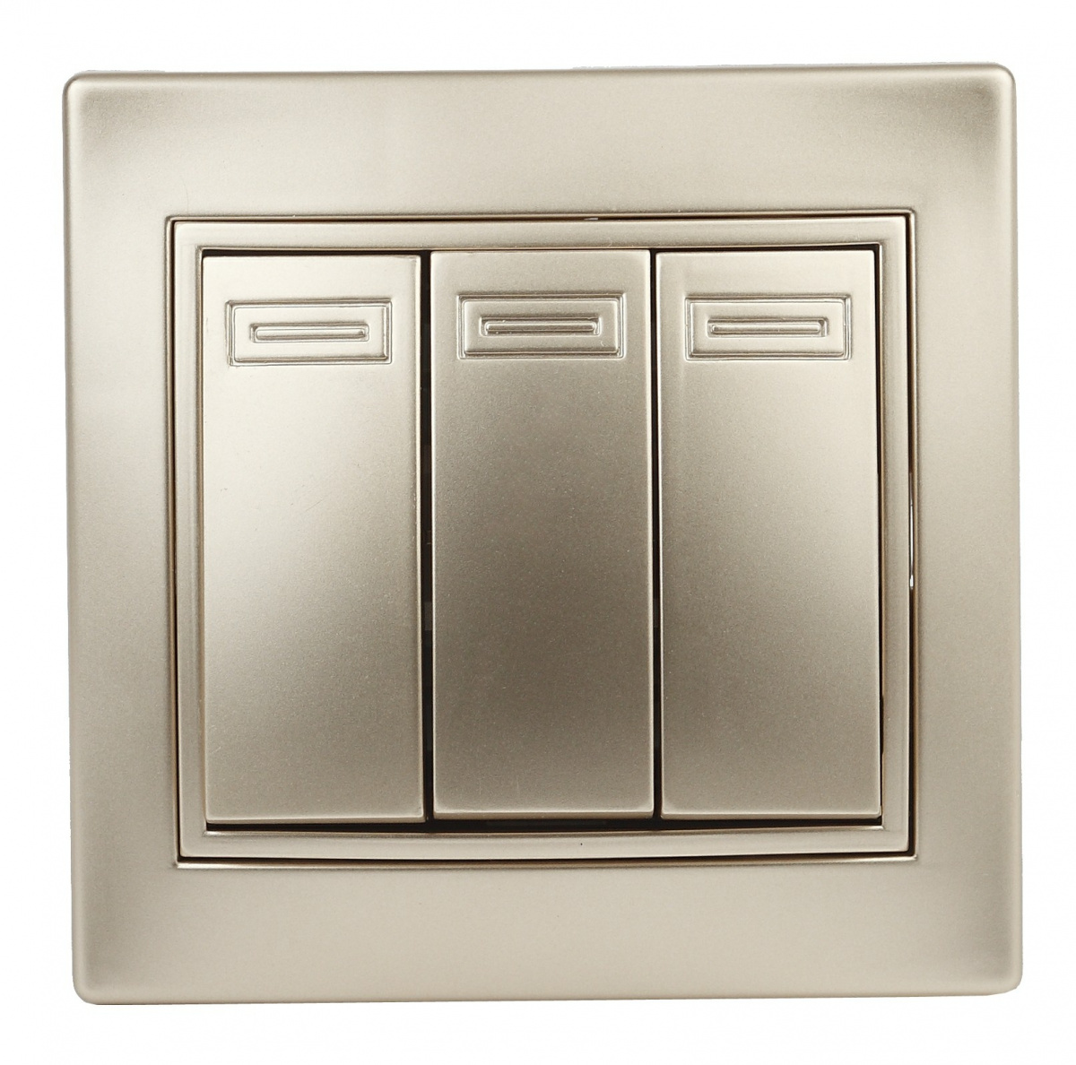 - Выключатель INTRO 3 клавиши, 10АХ-250В, скрытой установки, Plano, шампань (1/10/200/2400) (Б0030051)