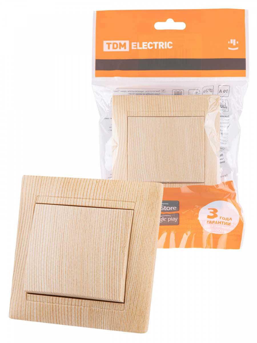 - Выключатель 1 кл. 10А сосна , с/у, "Лама" (10/120) TDM (SQ1815-0301)