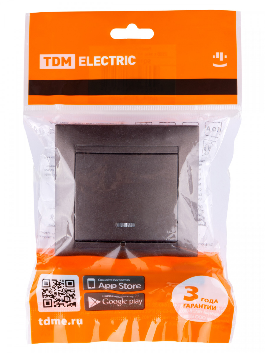 - Выключатель 1 кл. с подсветкой 10А шоколад , с/у, "Лама" (10/10) TDM (SQ1815-0504)