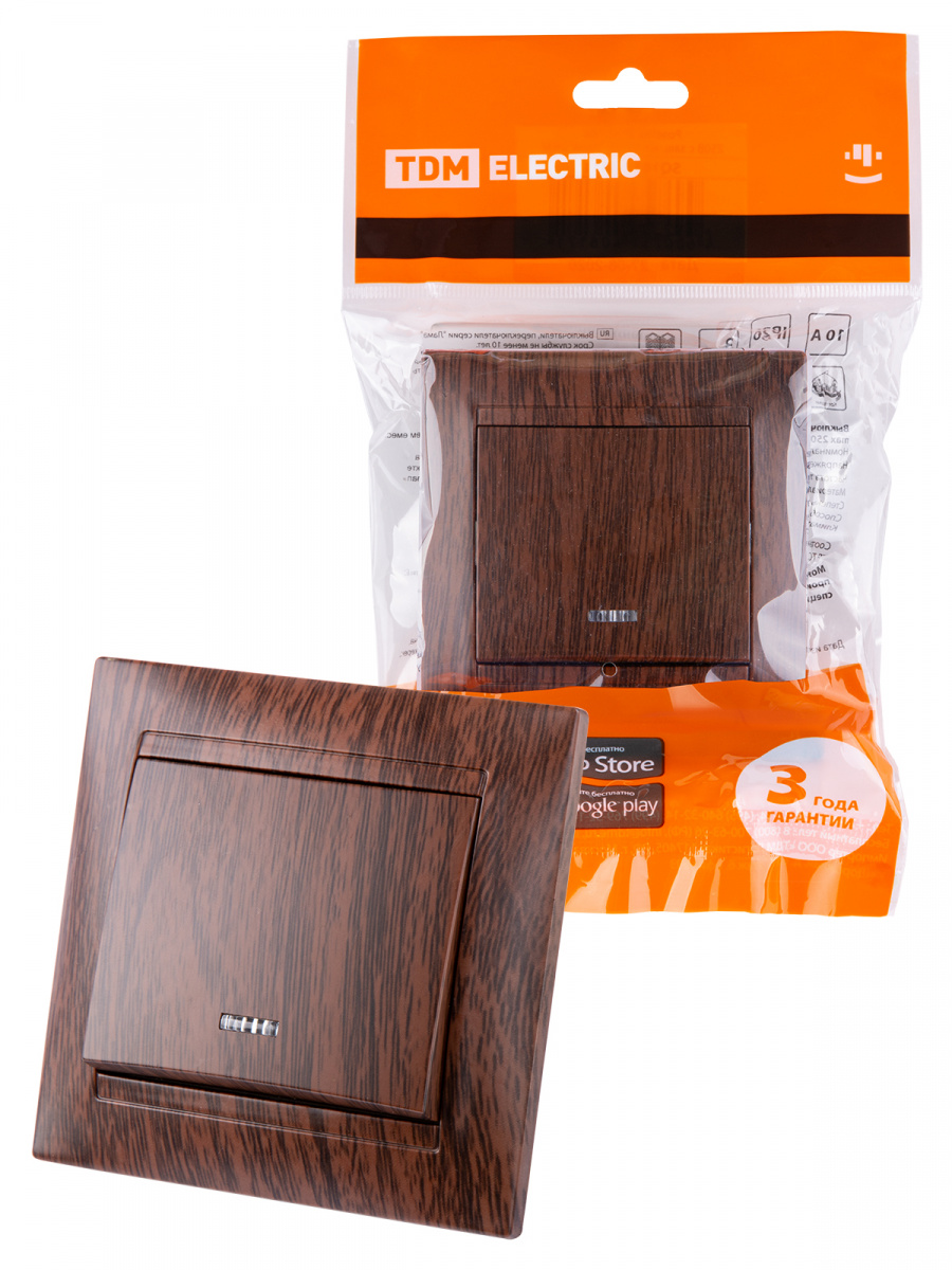 - Выключатель 1 кл. с подсветкой 10А венге , с/у, "Лама" (10/120) TDM (SQ1815-0404)