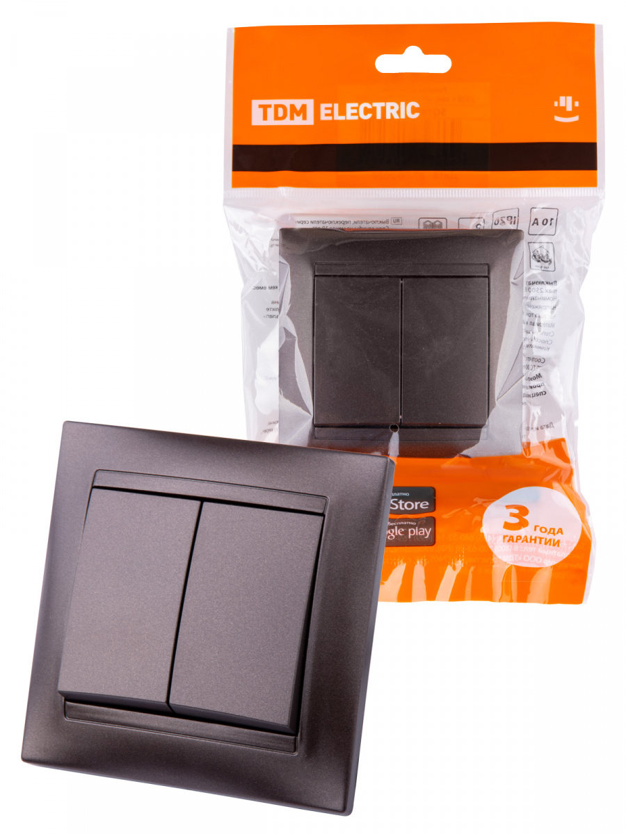 - Выключатель 2-х кл. 10А шоколад , с/у, "Лама" (10/120) TDM (SQ1815-0502)