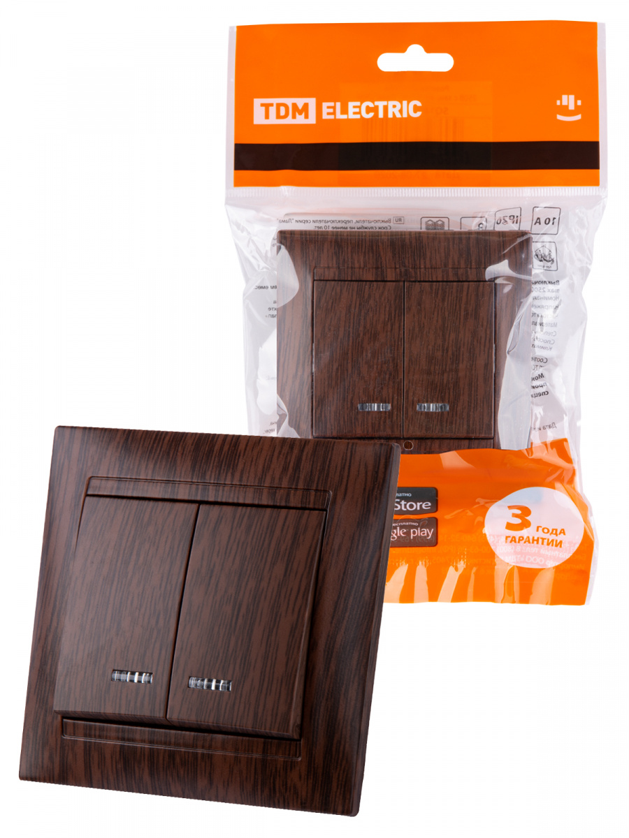 - Выключатель 2 кл. с подсветкой 10А венге , с/у, "Лама" (10/120) TDM (SQ1815-0405)