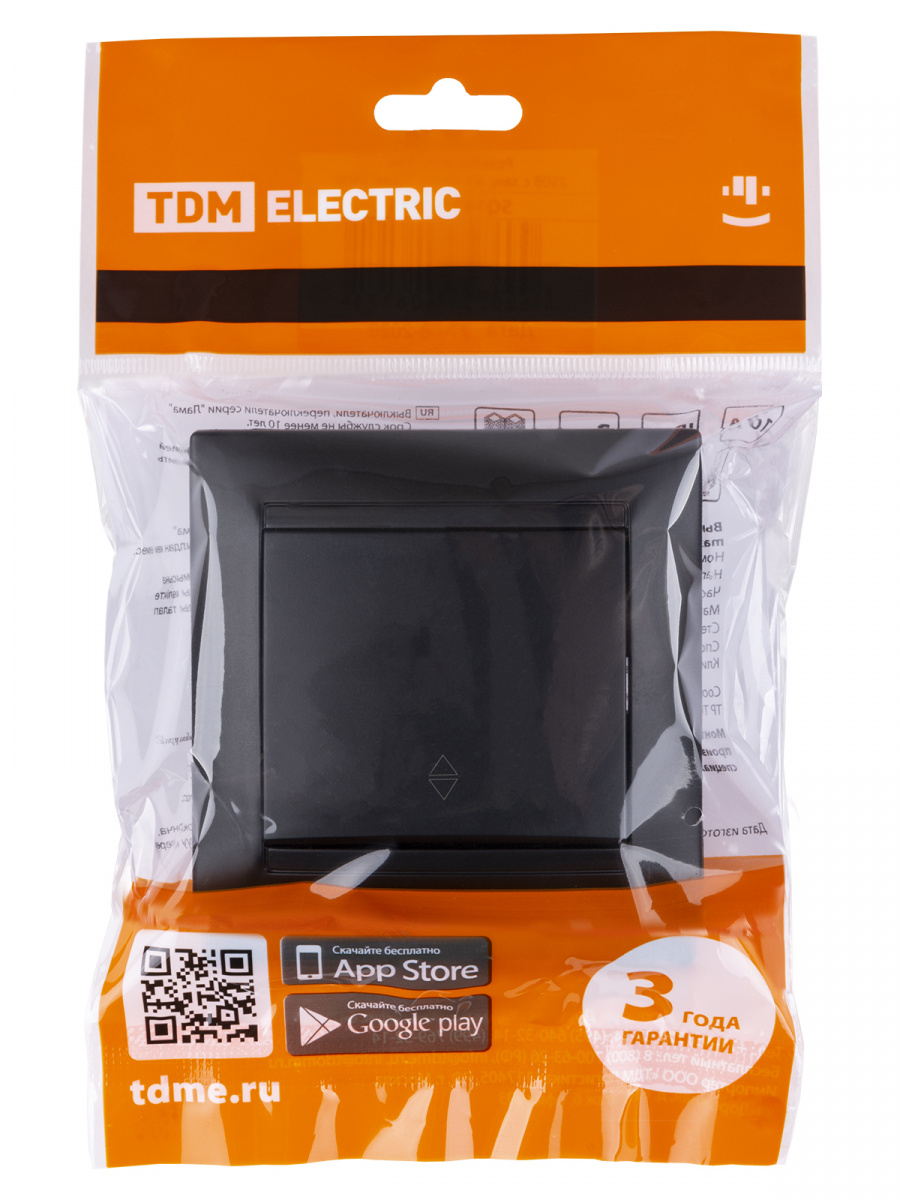 - Выключатель на 2 направления 1 кл. 10А графит, с/у, "Лама" TDM (10/120) (SQ1815-0606)