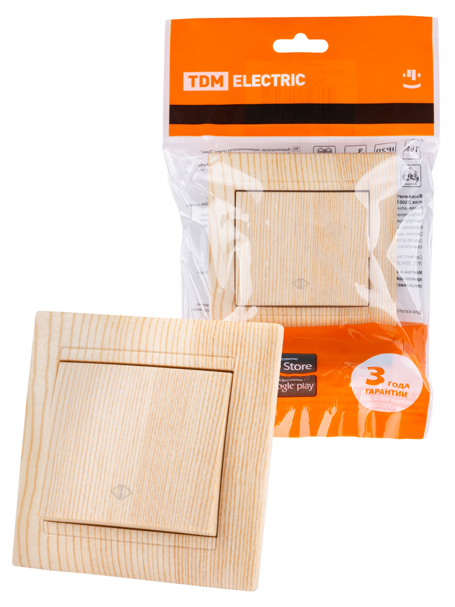 - Выключатель перекрестный 1-кл. 10А сосна , с/у, "Лама" (10/120) TDM (SQ1815-0336)