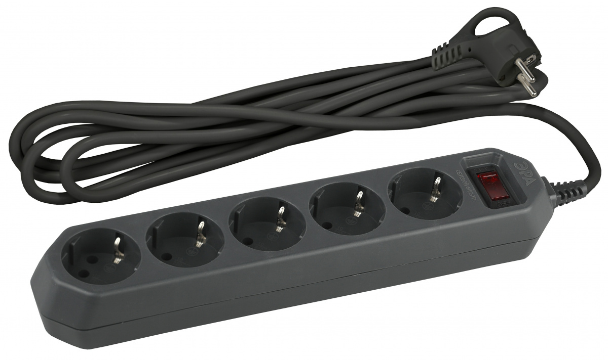 - Сетевой фильтр ЭРА USF-5es-1.5m-B с базовой защитой с заземлением с выключателем 5 розеток 1,5м 10А черный (1/20) (Б0019032)