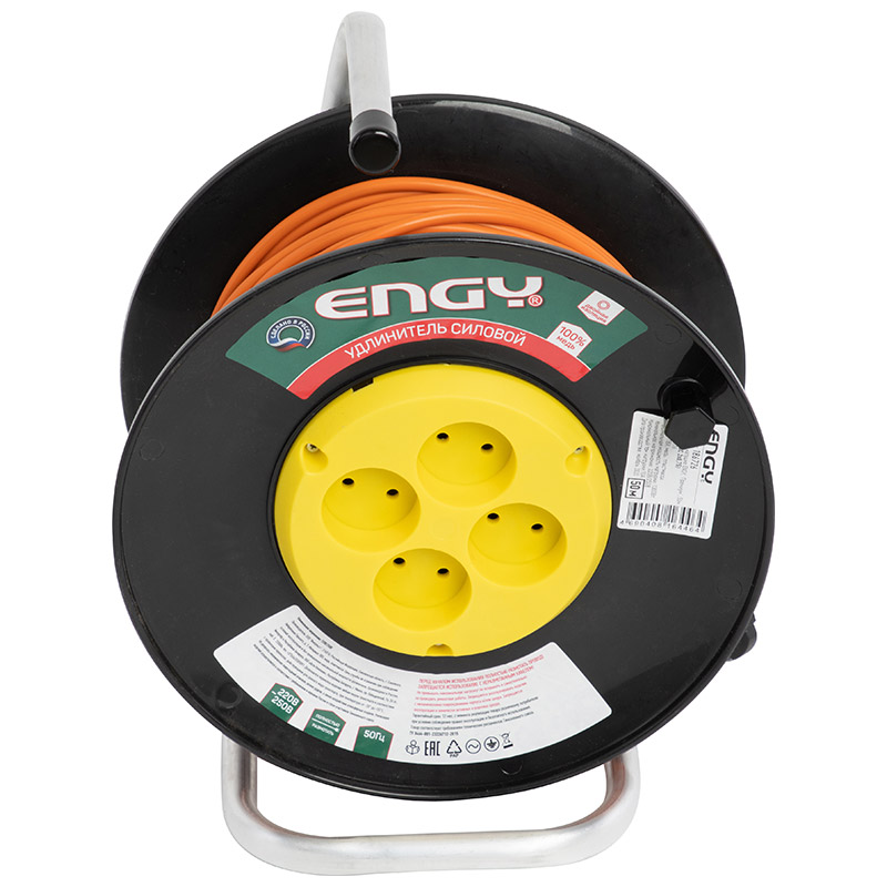 - Удлинитель на катушке ENGY, "Премиум", 50м./4роз, б/з, (ПВС 2х0,75) (1/2) (186726)