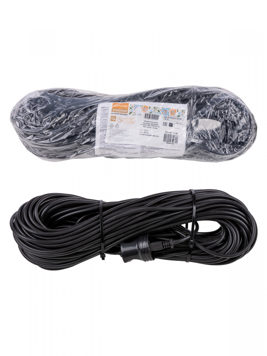- Удлинитель НАРОДНЫЙ шнур силовой, ПВС 2200 Вт б/з, 40м, штепс. гнездо (1/5) (SQ1307-0209)