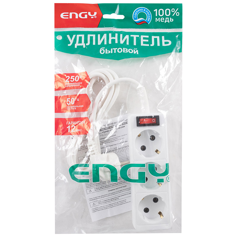 - Удлинитель с выключателем ENGY "Гранд" 2м/3роз с/з (ПВС 3х0,75) (1/30) (186730)