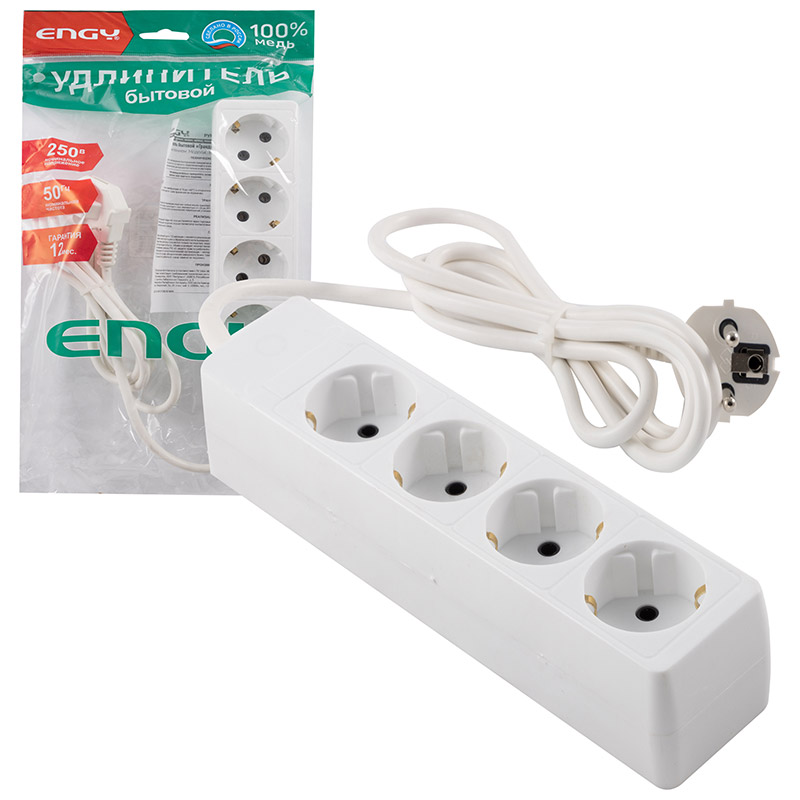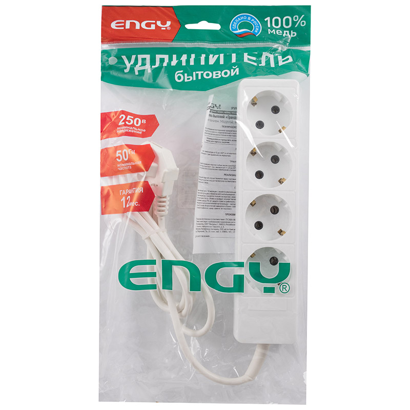 - Удлинитель ENGY "Гранд" 1,7м/4роз. с заземлением (ПВС 3х0,75) (1/30) (186689)
